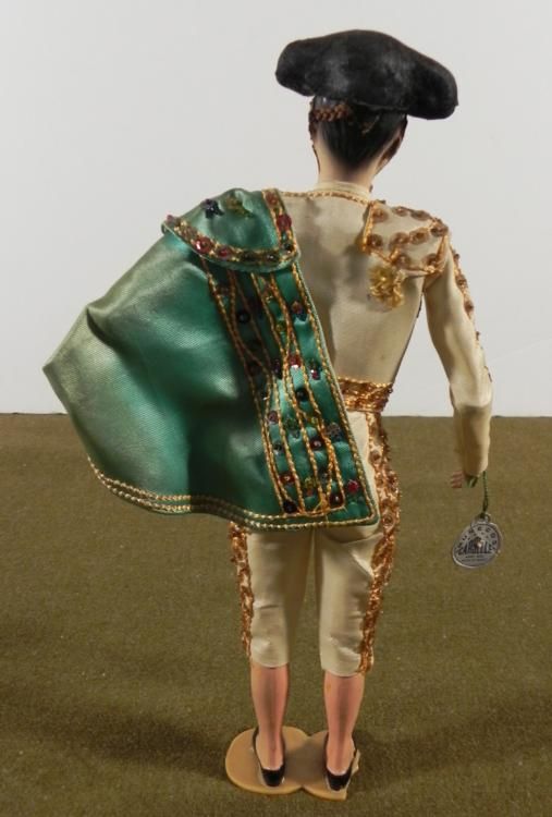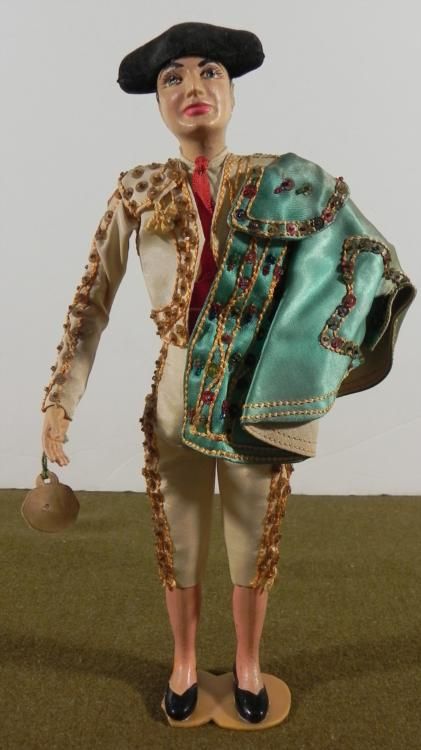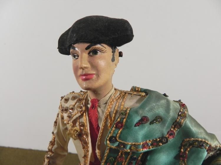 50'S MEXICAN MATADOR STATUE/DOLL-12" TALL-BEAUTIFUL DETAIL TO COSTUME&CAPESMALL CHIP TO STAND-DOES NOT EFFECT ITEM-GREAT VINTAGEPIECE