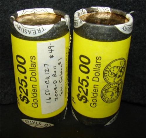 ROLL OF 25 2005-D & ROLL OF 25 2005 SACAJAWEA DOLLARS. From the U.S. Mint.