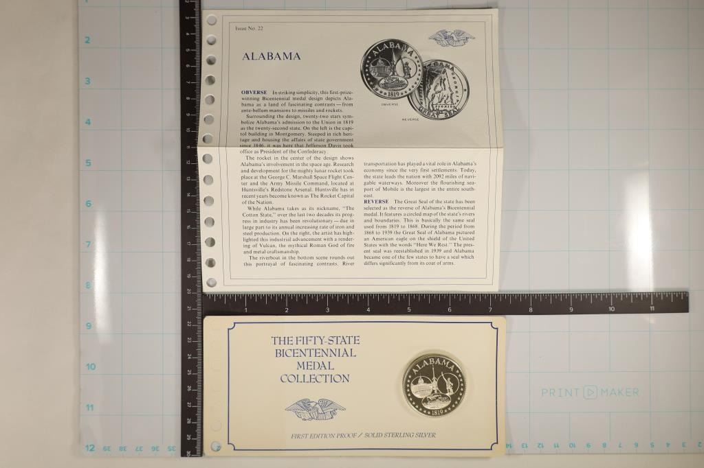 COLLECTION: ALABAMA, 500 GRAINS STERLING SILVER IN ORIGINAL MINT PACKAGING BY THE FRANKLIN MINT WITH CERTIFICATE