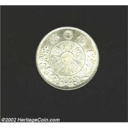 50 Sen Meiji 3 (1870), Y4, Choice BU, an original uncleaned coin with prooflike luster on the reverse. Important notice: We expect to be auctioning lots at the rate of 200-250 per hour. Sometimes eBay Premier live bid software cannot keep up with that pace, so we strongly recommend that you place a realistic proxy bid now as insurance to avoid disappointment. Also please note that all Heritage/CAA lots purchased through eBay Premier carry a 20% Buyer's Premium. Please make sure you read the Terms and Conditions.