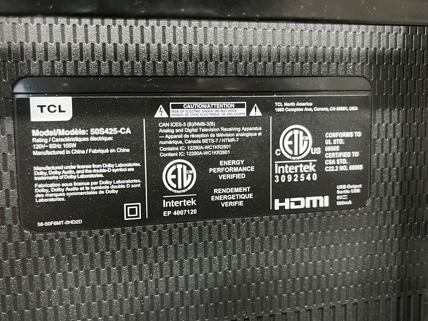 TCL ROKU TV 50" with wall Mount - Includes remote