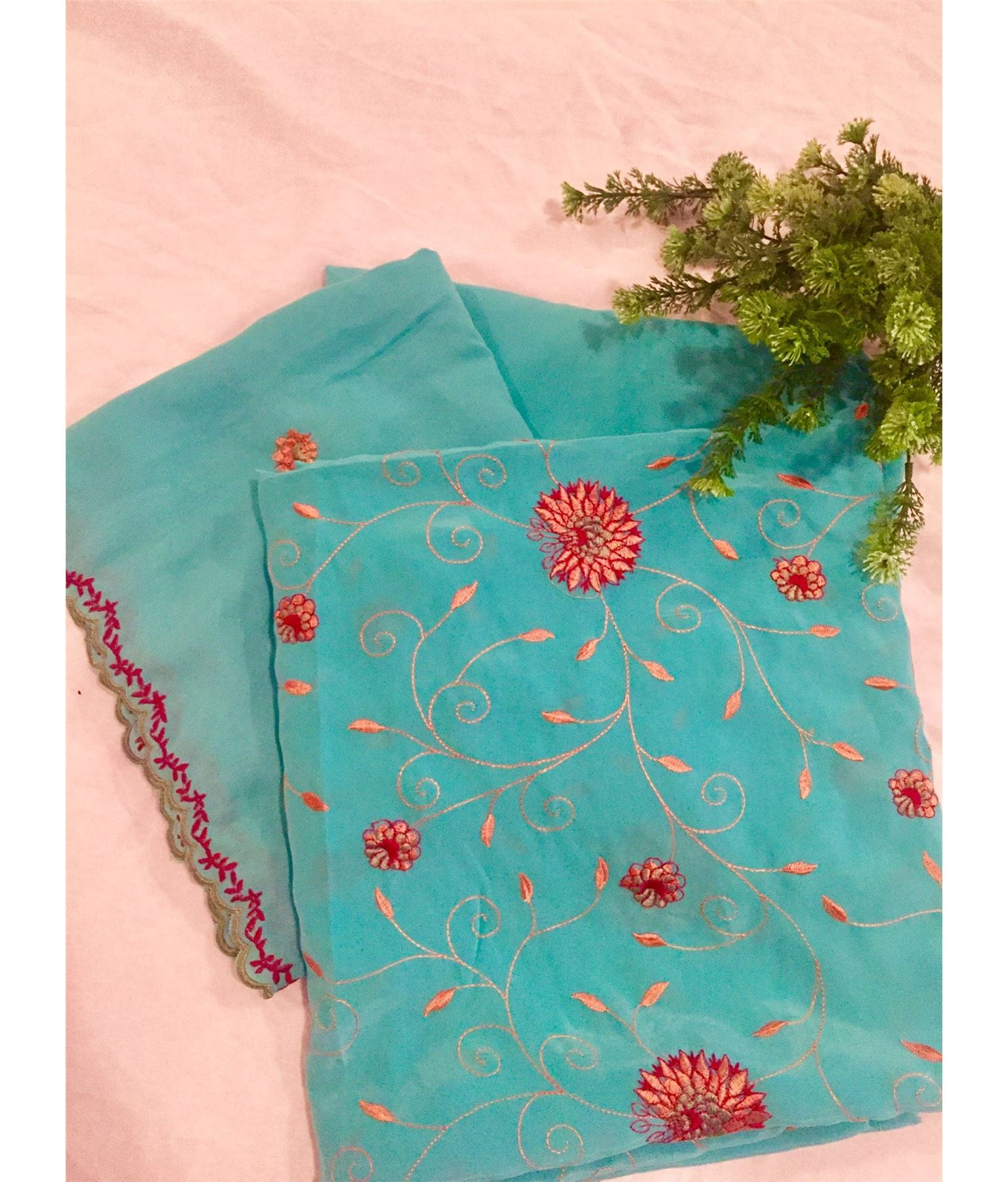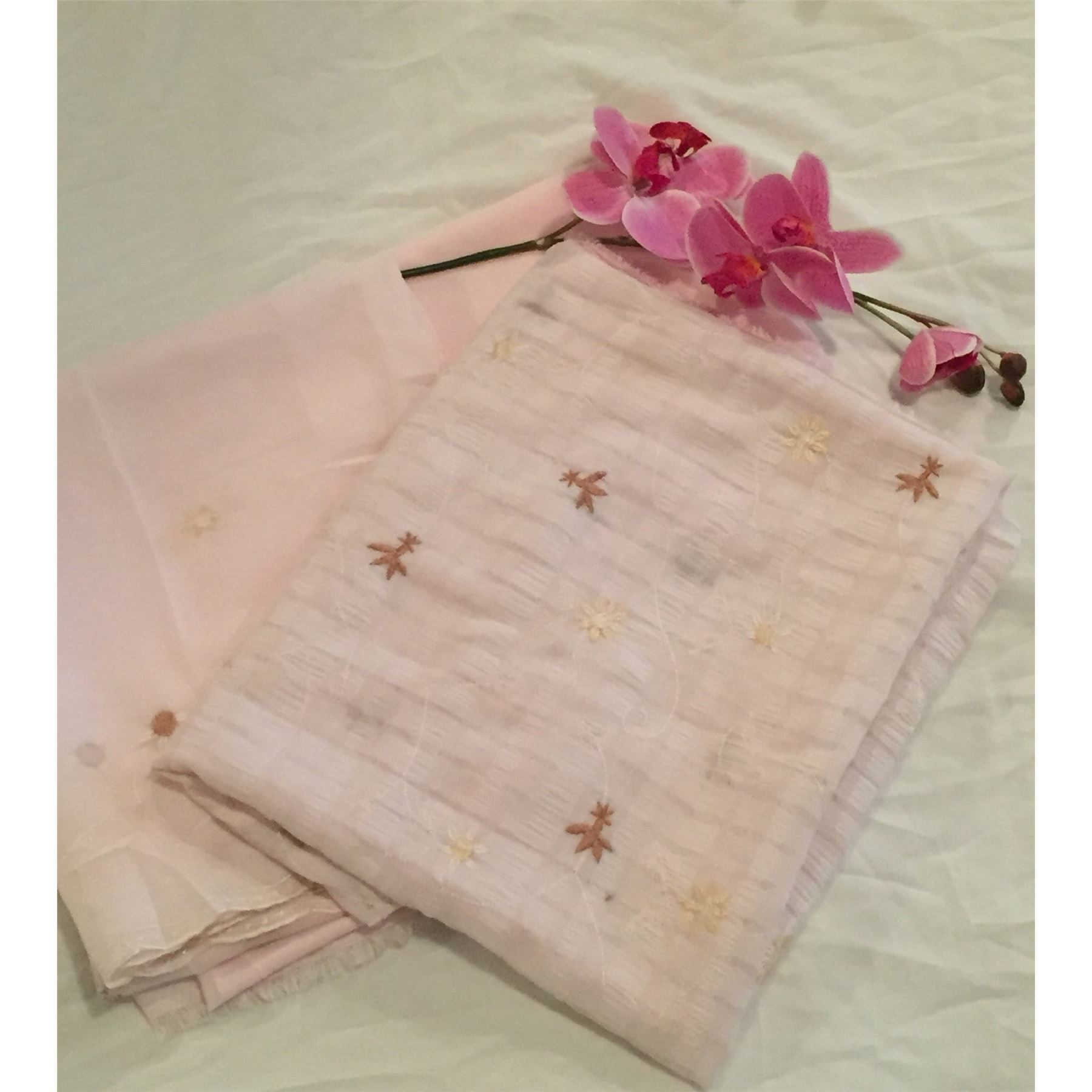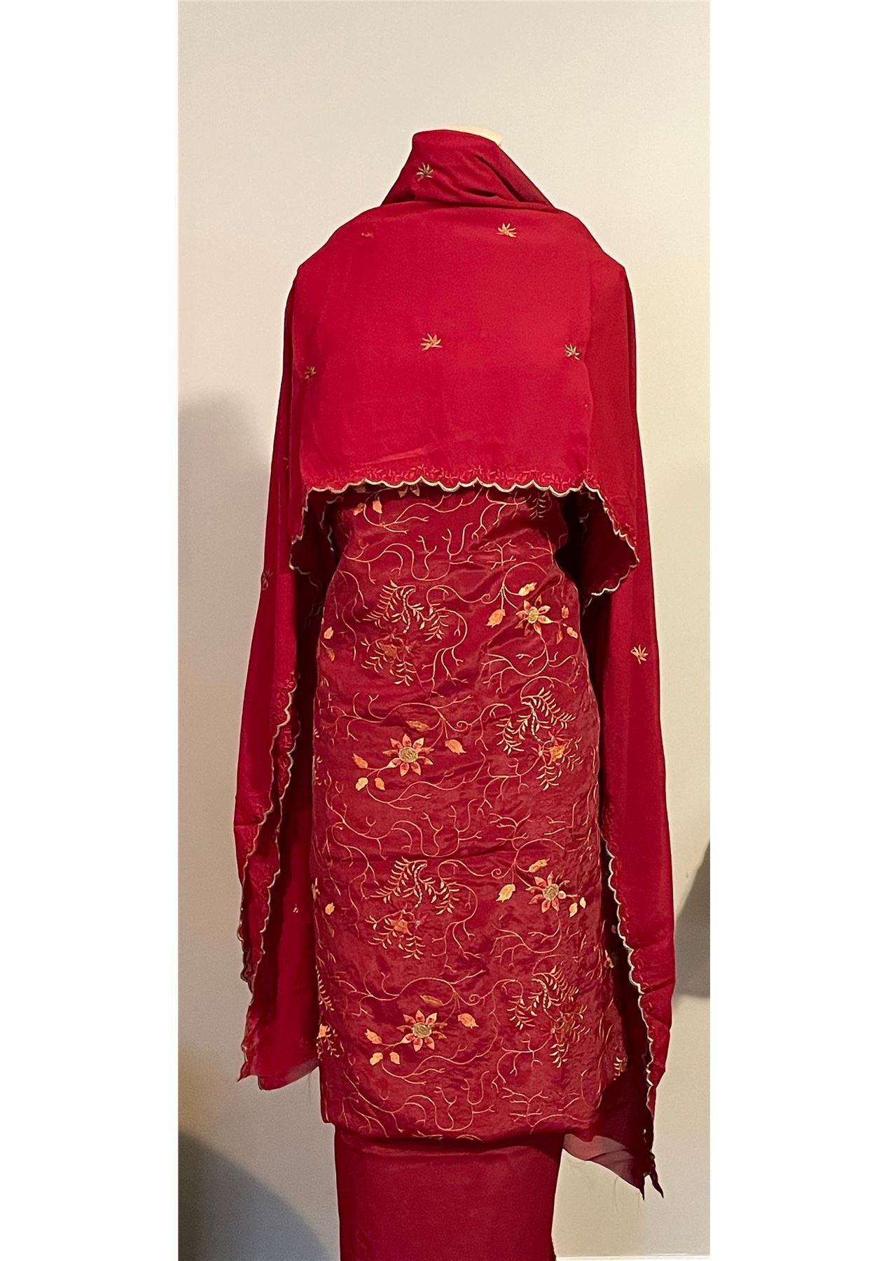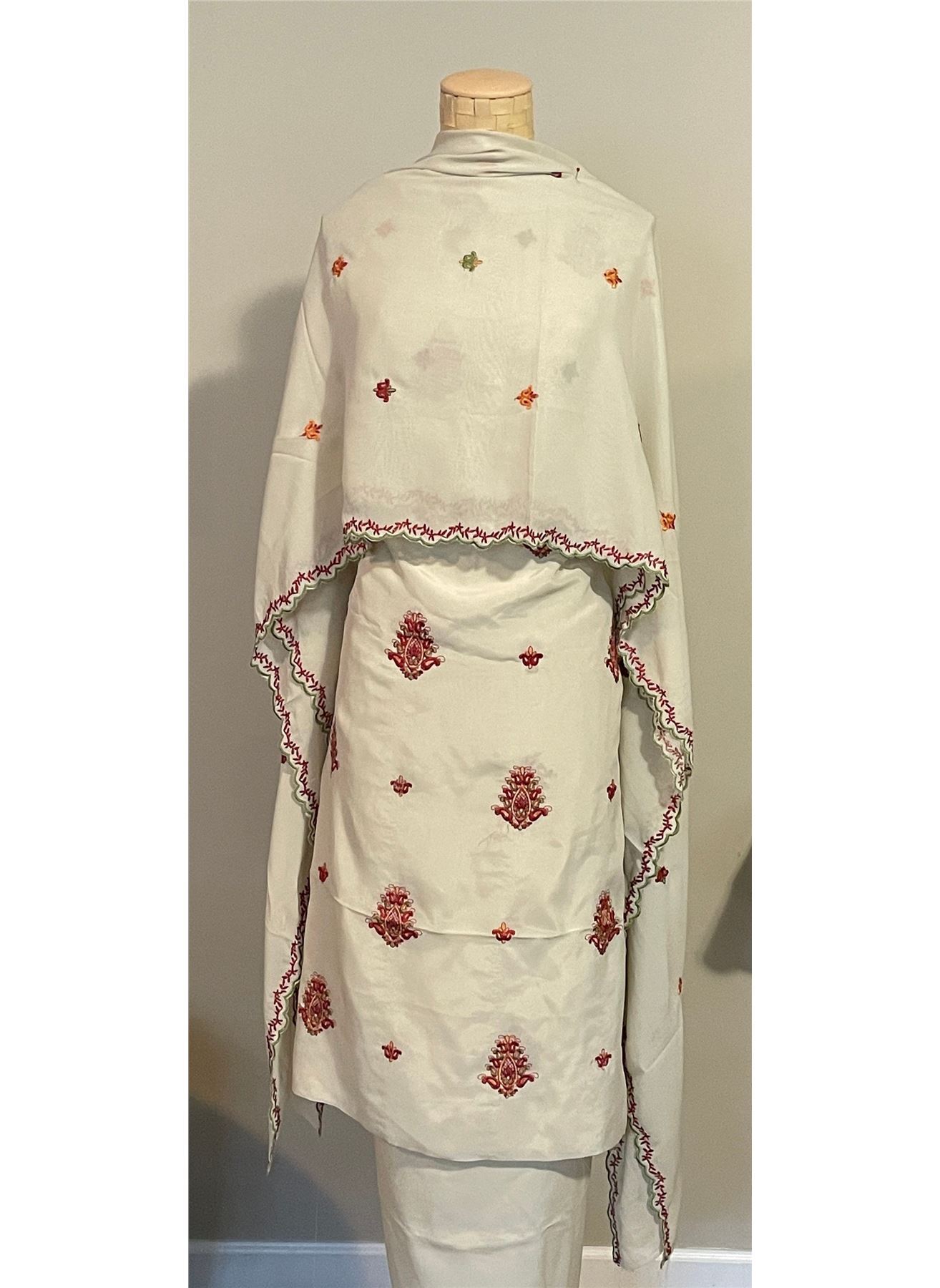 Women’s unstitched suit material with thread embroidery . High quality crepe-de-chine in 2 or 3 piece, Each suit set is made up of