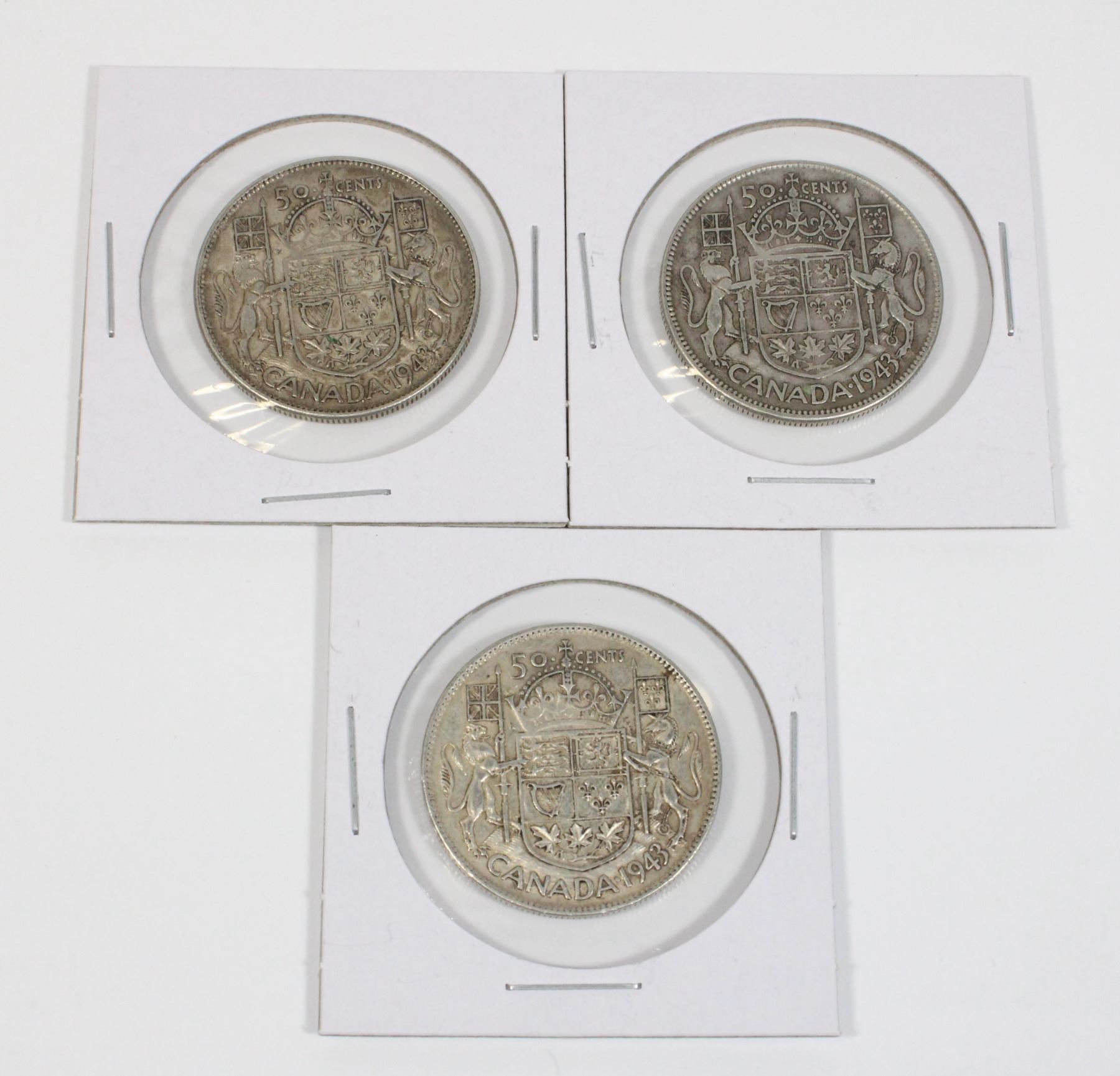 #50 WW2 CANADA 1943 SILVER 50 CENT COIN LOT OF 3