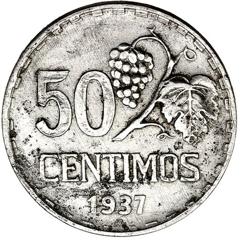 50 céntimos. 1937. Madrid. Prueba no adoptada. VII-215. Oxidaciones limpiadas. MBC-/MBC+.No más de tres ejemplares conocidos. Ex Jesus Vico S.A., marzo 1989, lote 931.