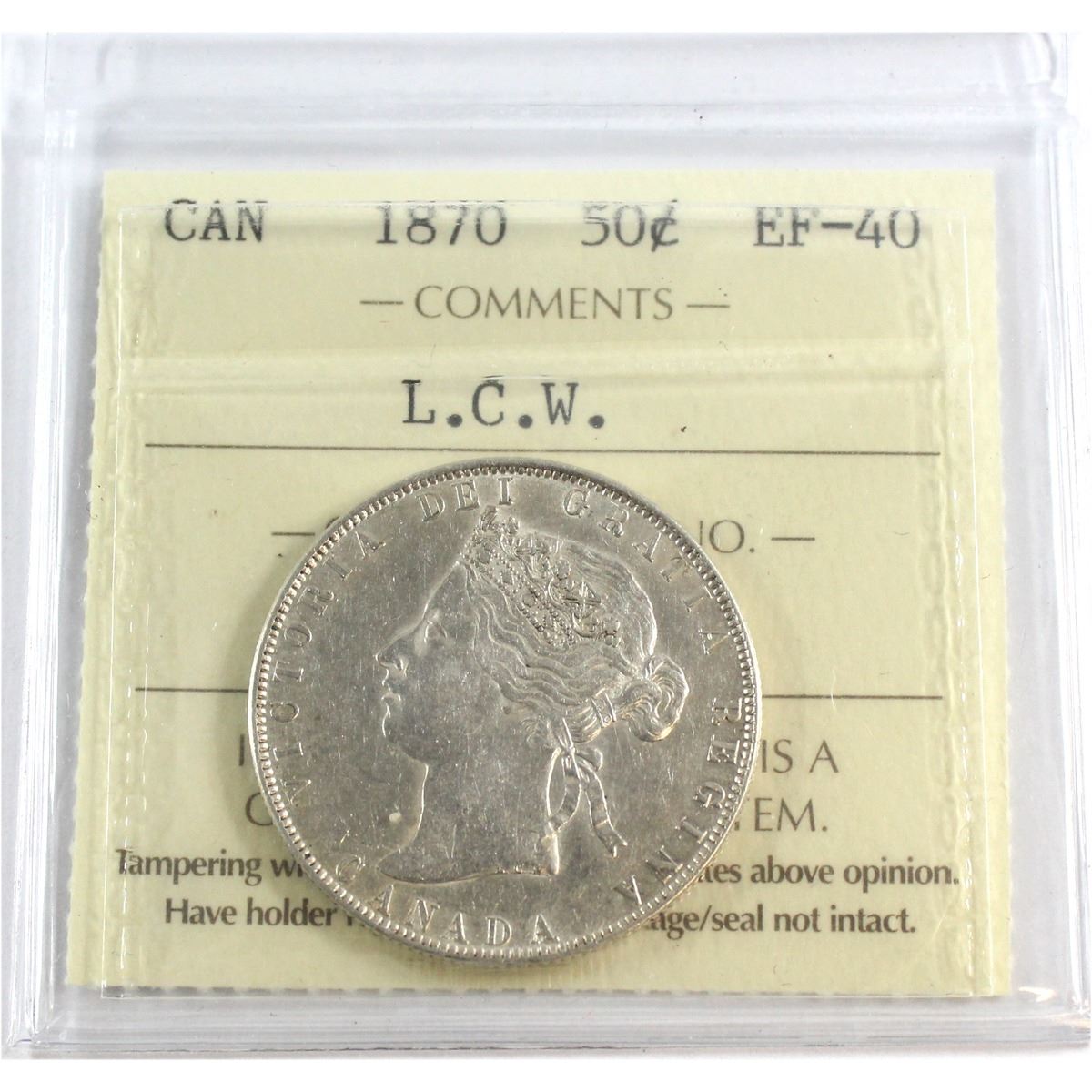 50-cent 1870, L.C.W. ICCS Certified EF-40. A Nice Bright coin with traces of mint luster throughout.