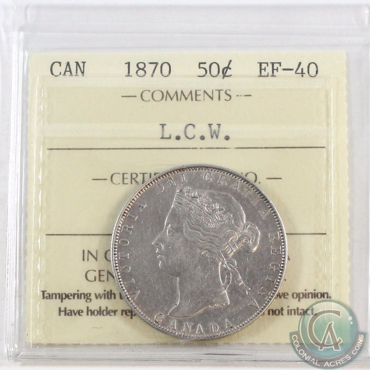 50-cent 1870 L.C.W. ICCS Certified EF-40