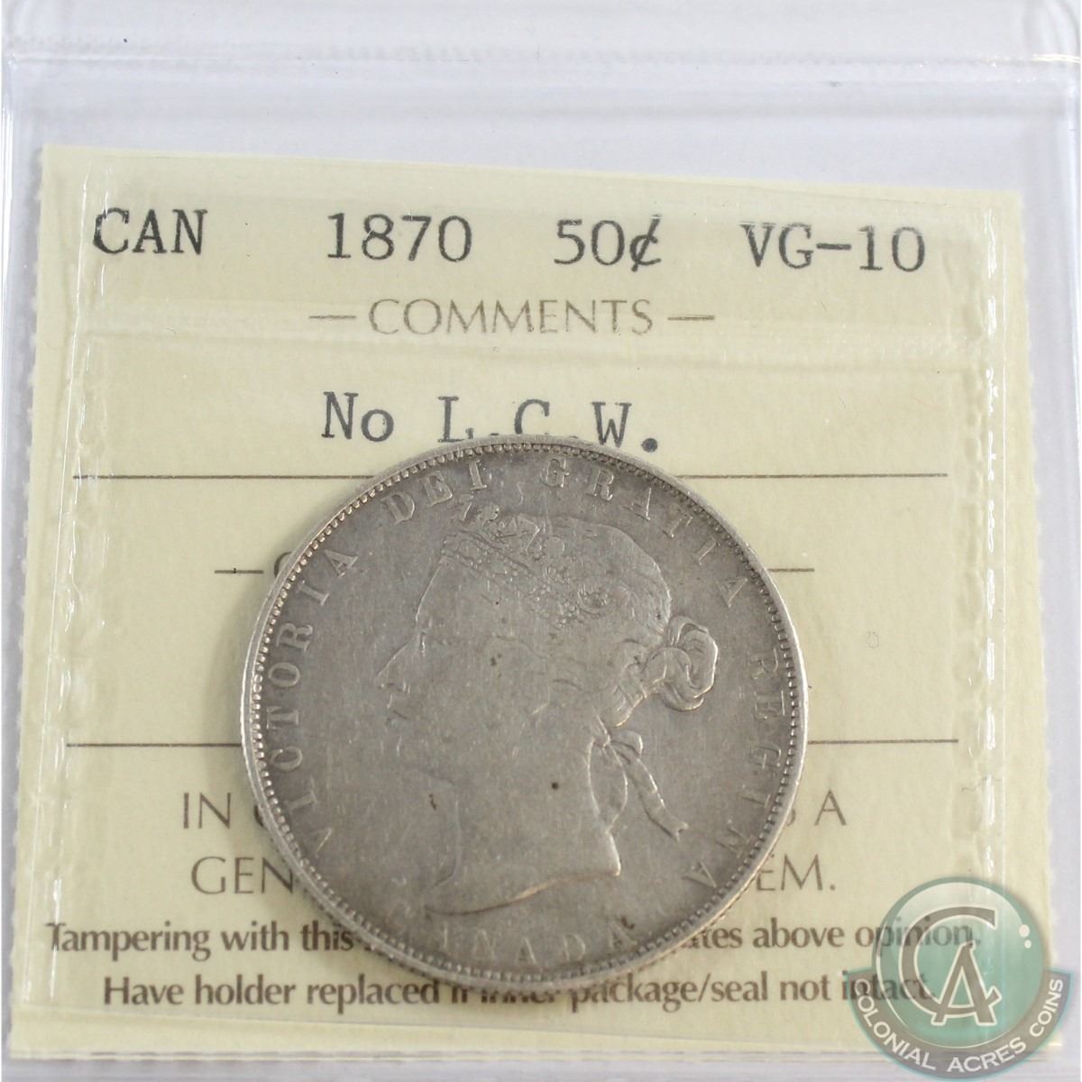 50-cent 1870, NO L.C.W. ICCS Certified VG-10! *Rare Variety*
