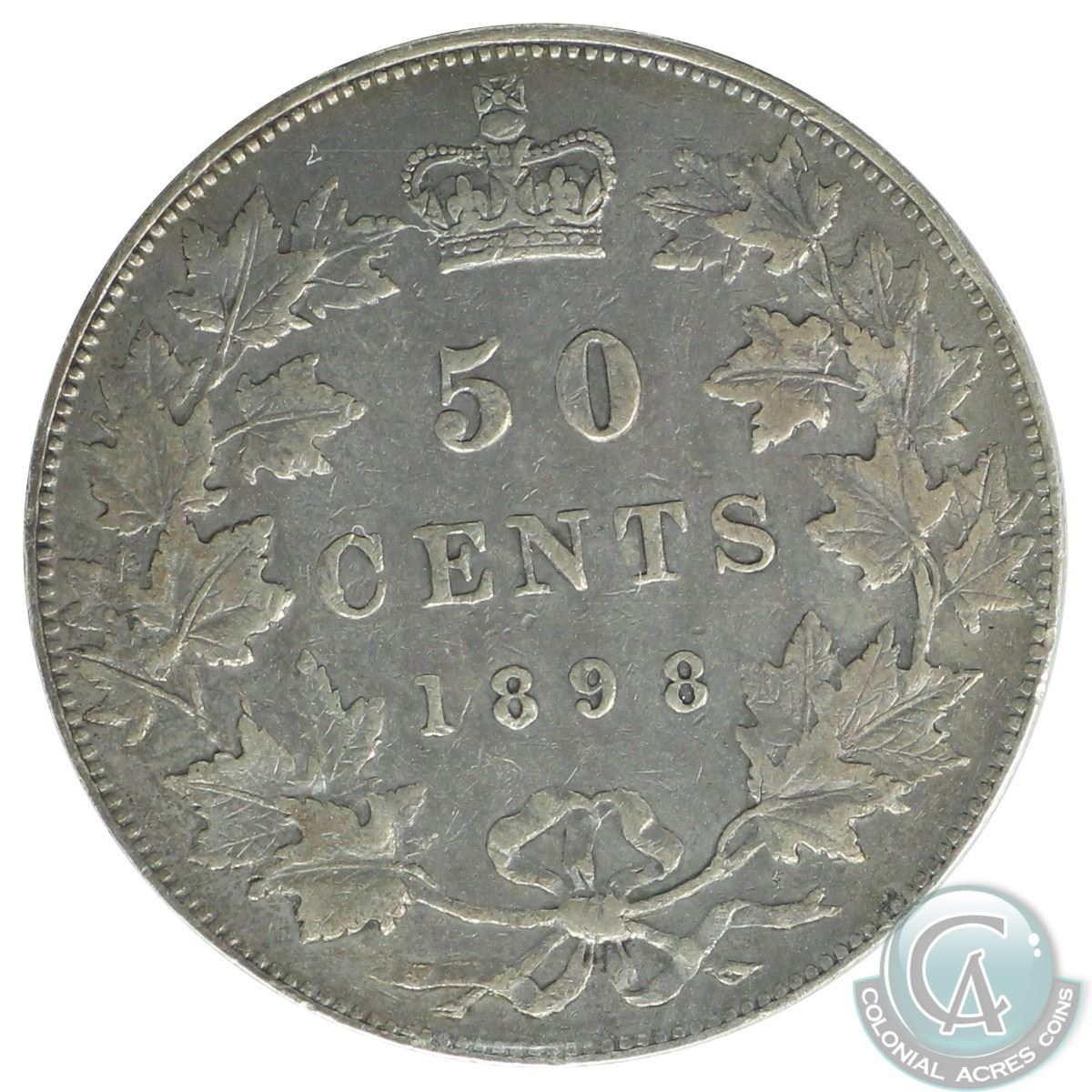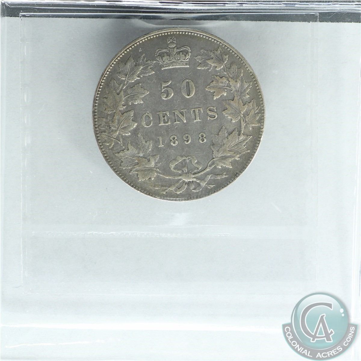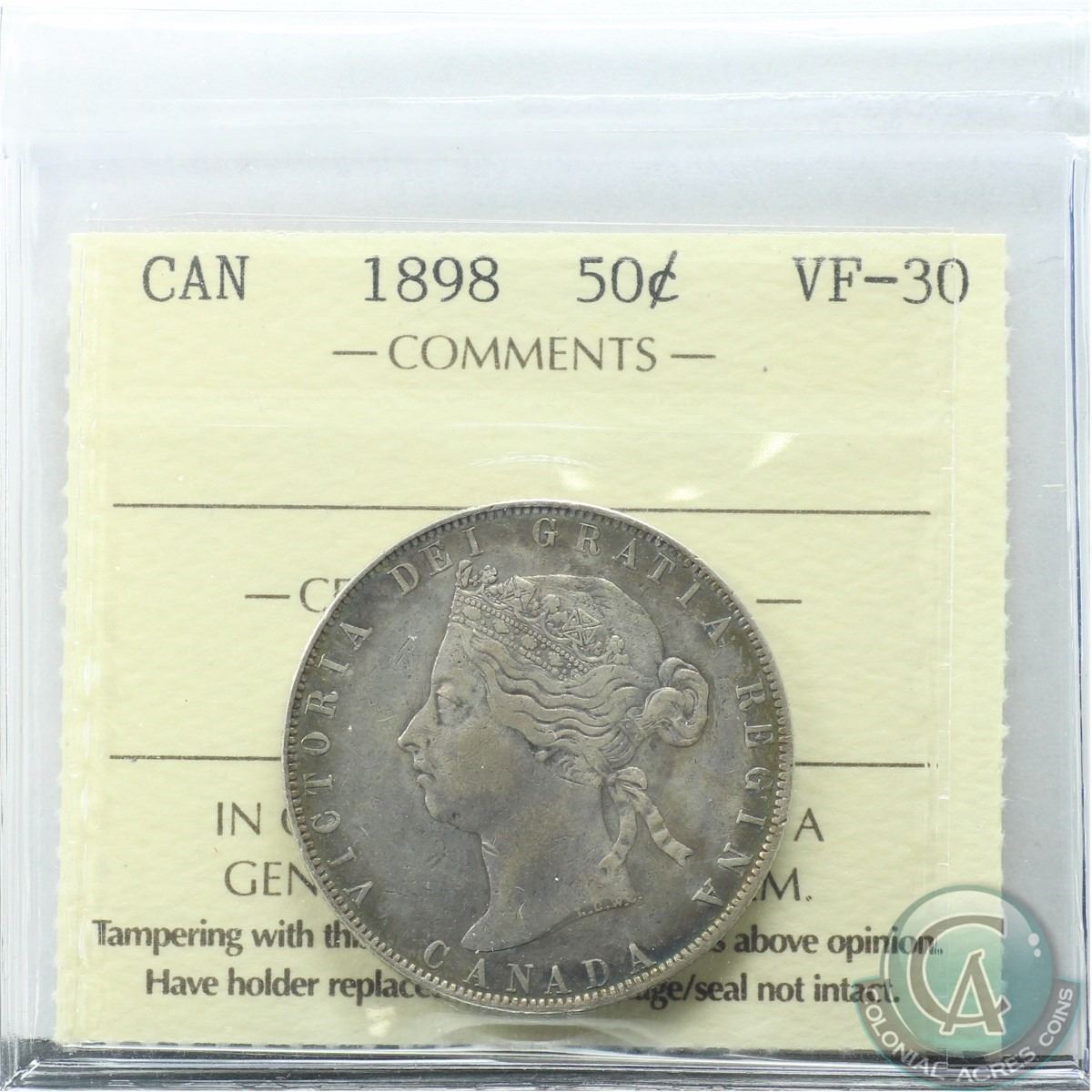 50-cent 1898 ICCS Certified VF-30. Nice rainbow toning around rim of obverse.