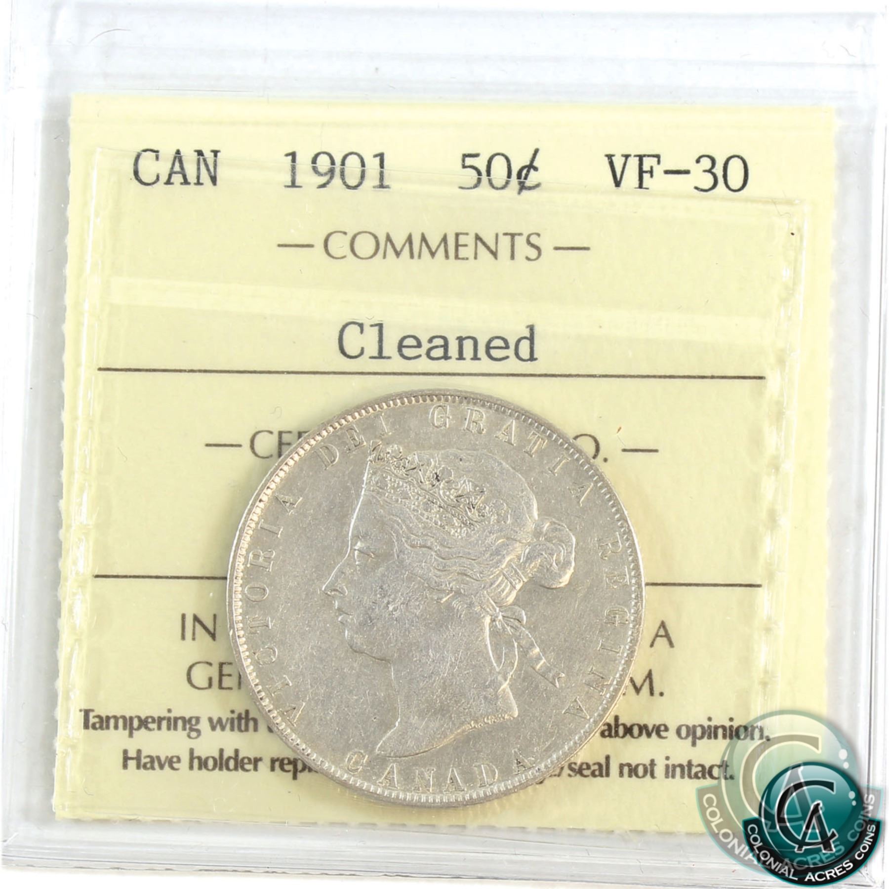 50-cent 1901 ICCS Certified VF-30 (cleaned).