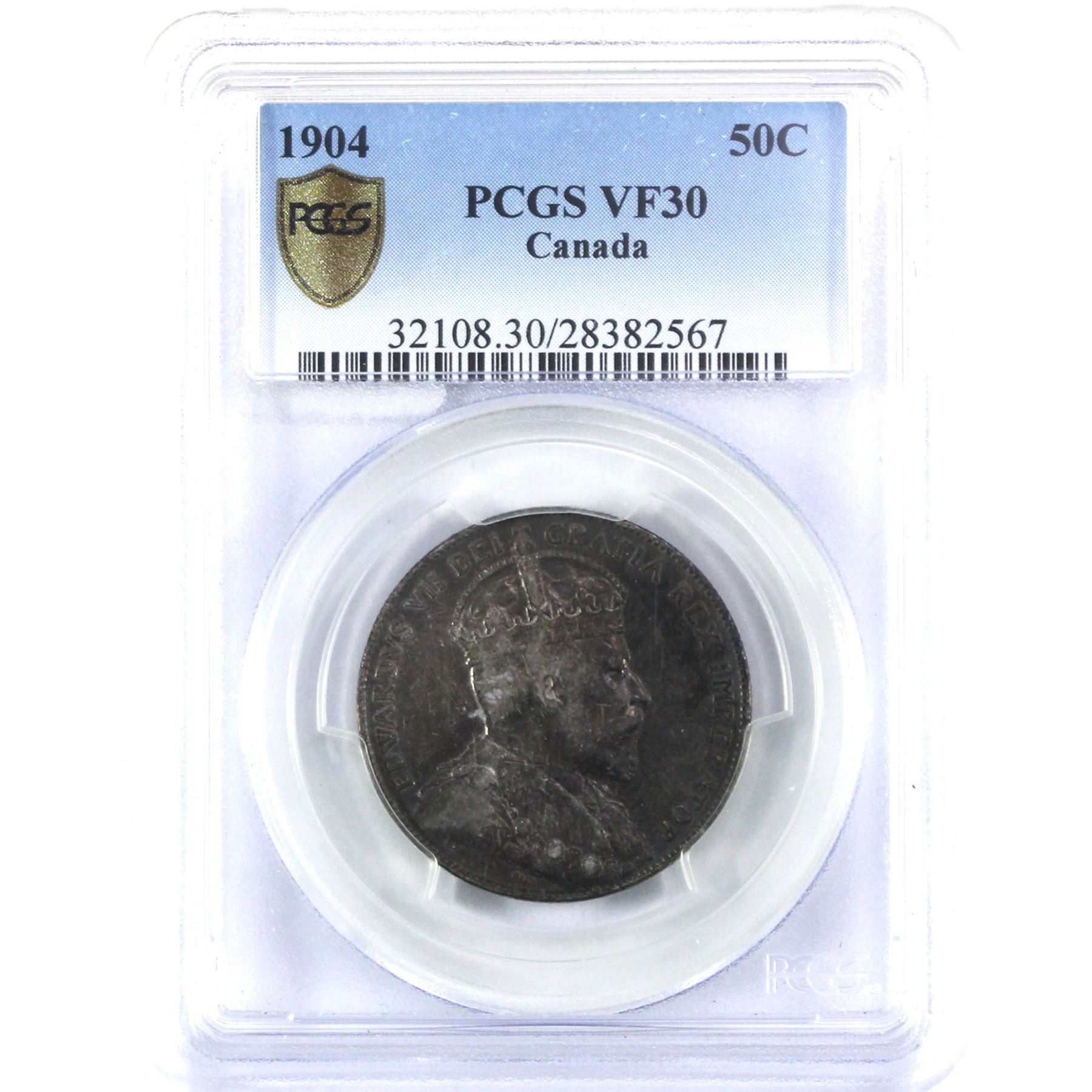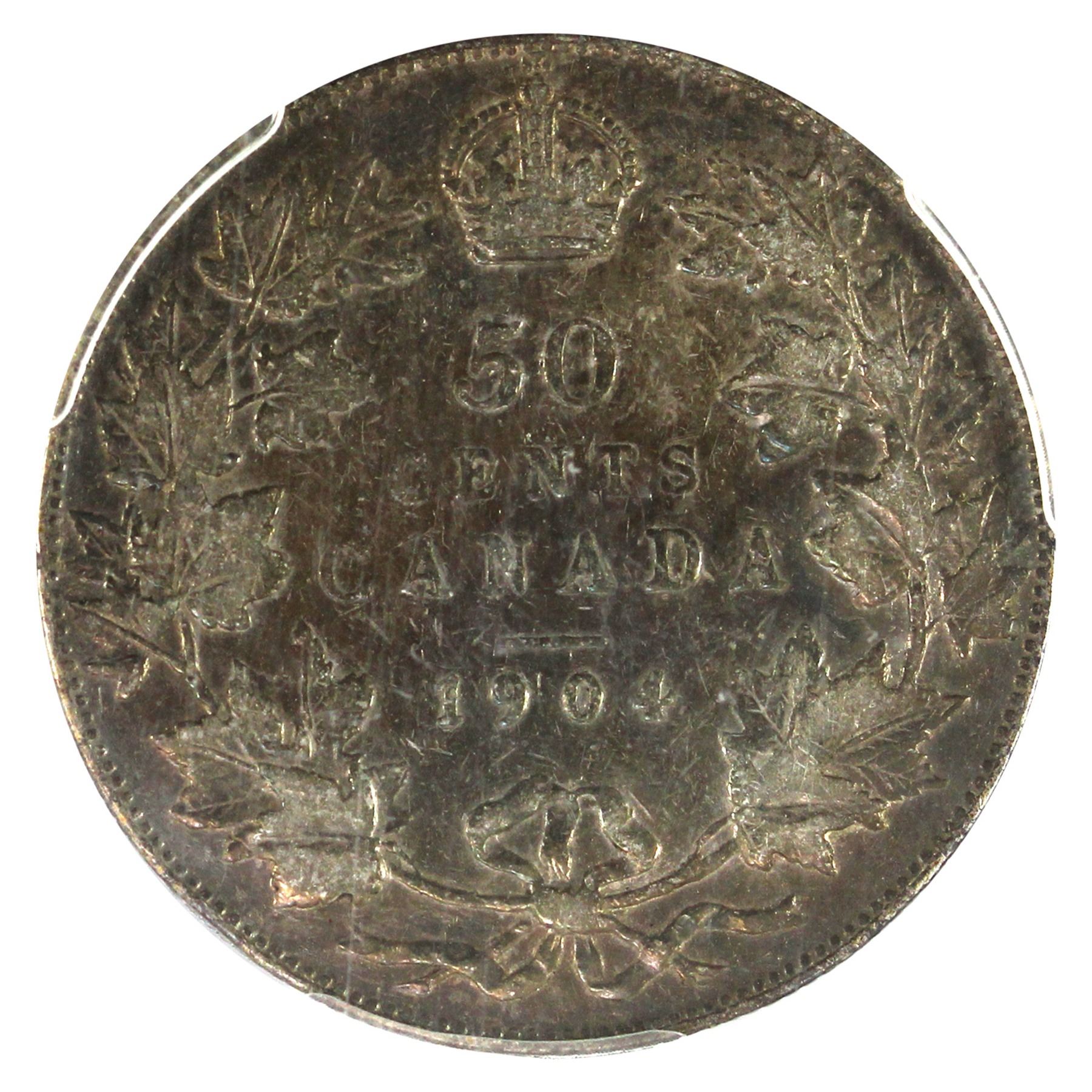 50-cent 1904 PCGS Certified VF30. Rich Russet Tones with Blue and Violet Centre on Reverse
