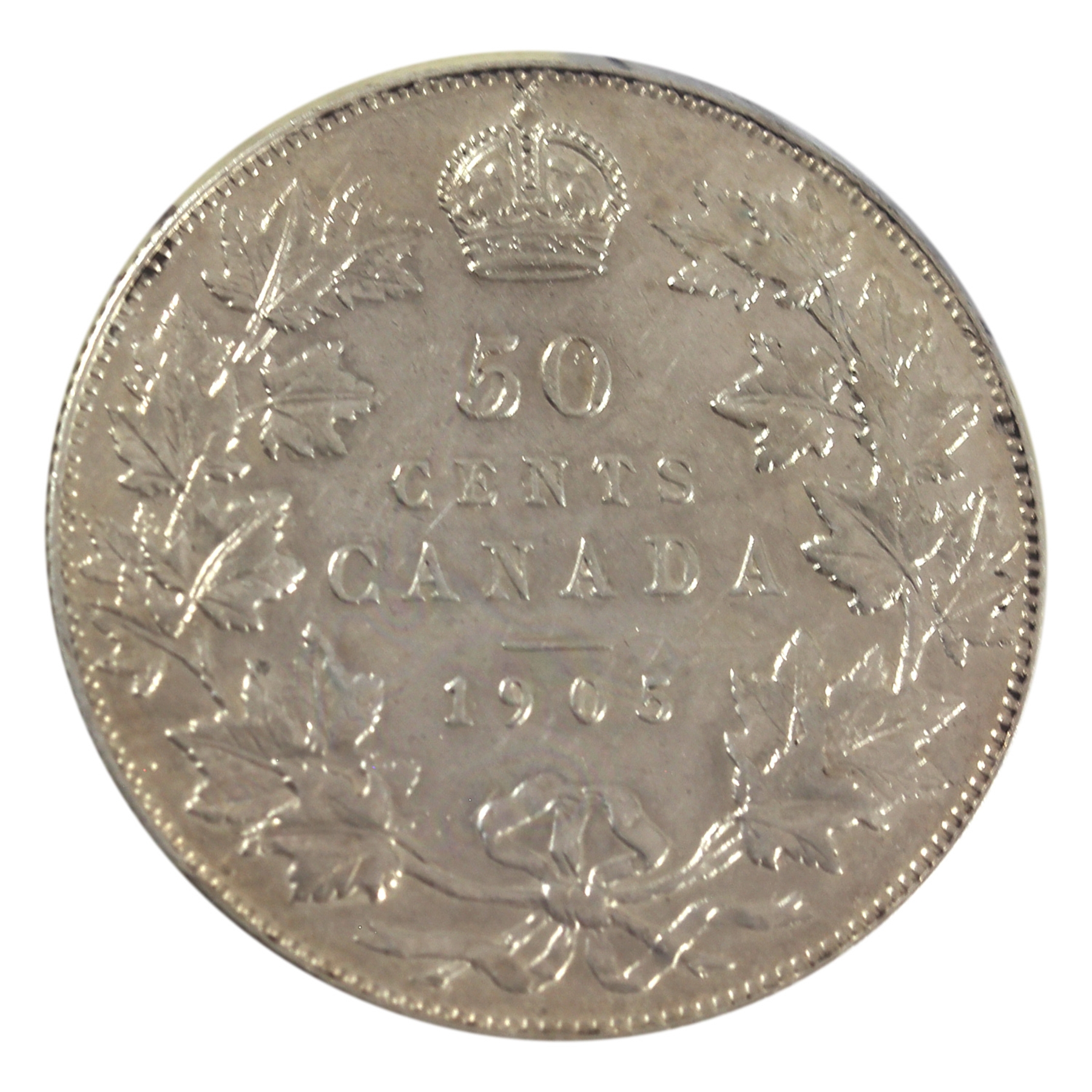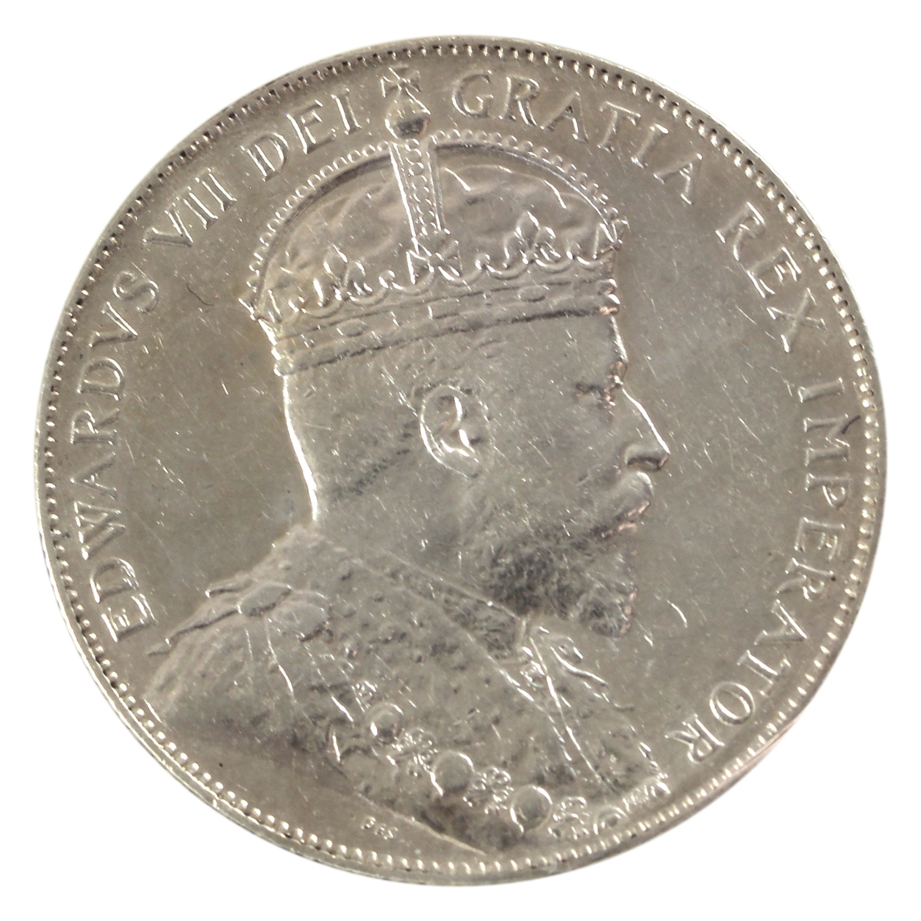 From the lowest mintage among Edward VII 50-cents. A bright, cheery piece to garland your collection of Canadian sterling.