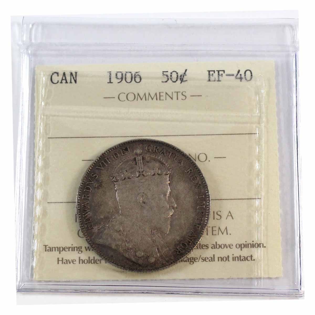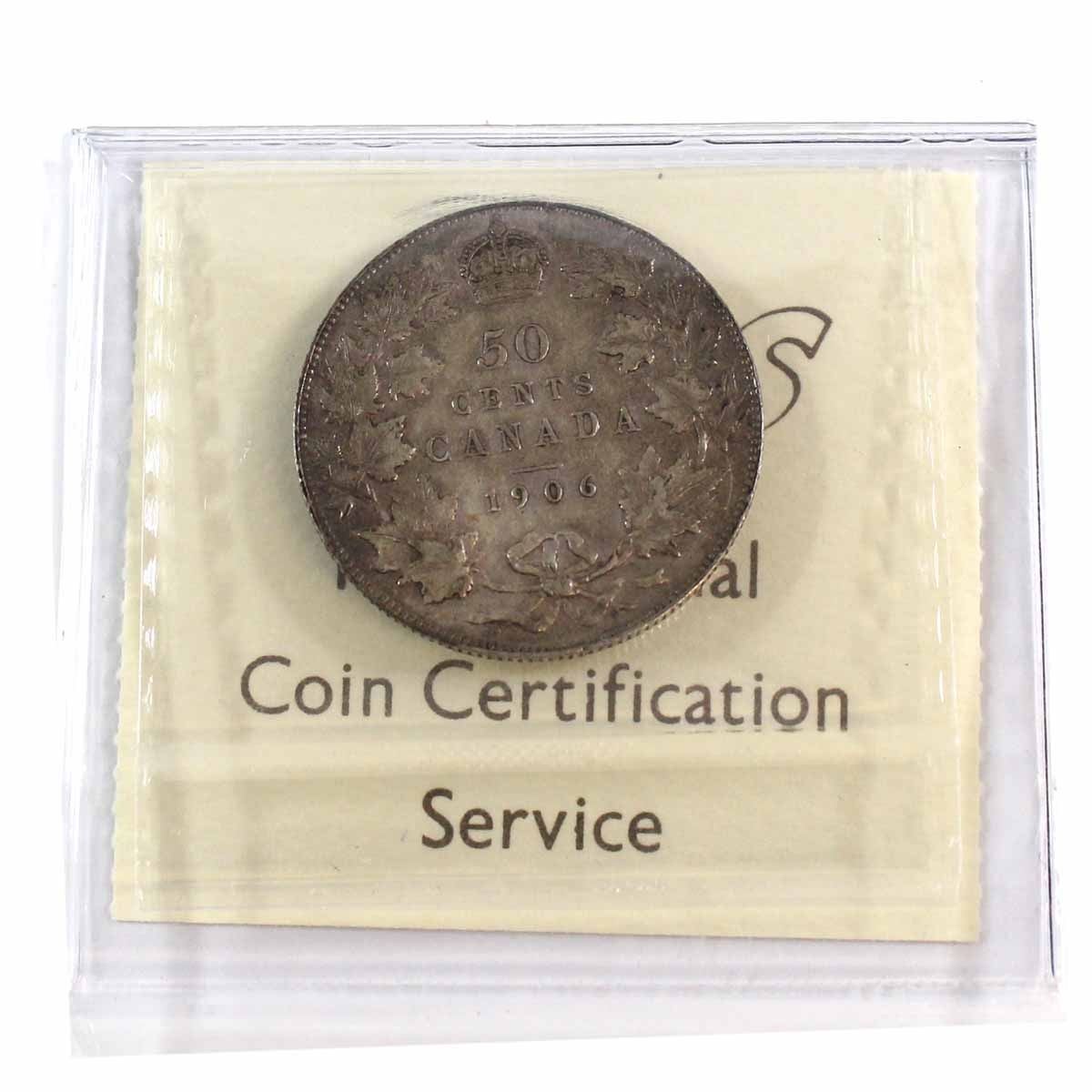 50-cent 1906 ICCS Certified EF-40. A Nice original coin with medium tones throughout.