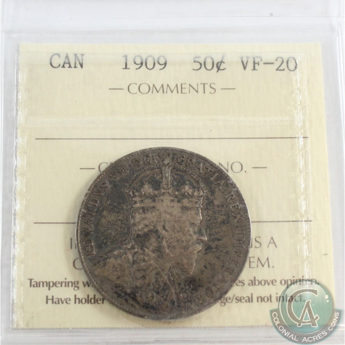 50-cent 1909 ICCS Certified VF-20