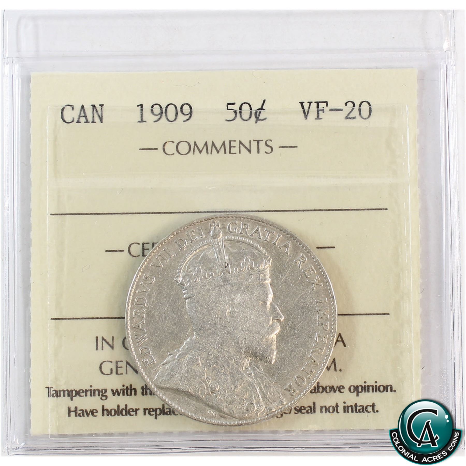 50-cent 1909 ICCS Certified VF-20.