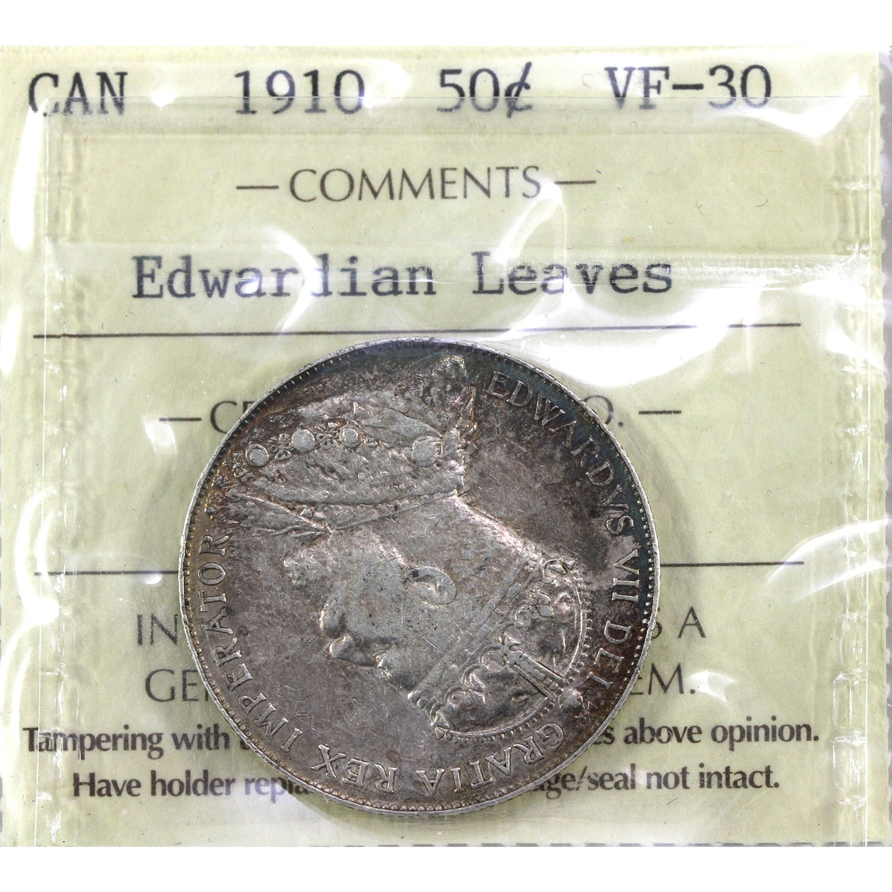 50-cent 1910 Edwardian Leaves ICCS VF30