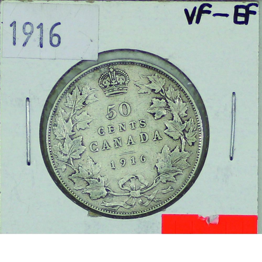 50-cent 1916 in VF-EF condition. A nice mid-grade example of this semi key date issue.