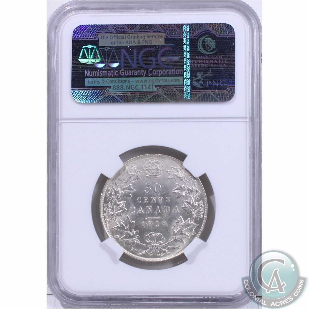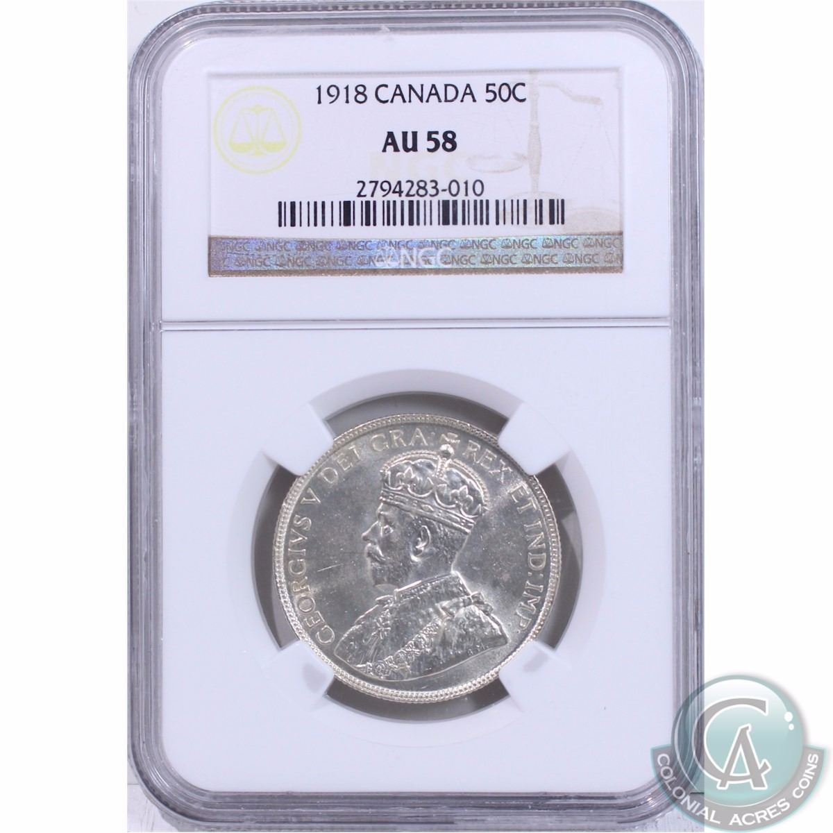 50-cent 1918 NGC Certified AU-58. A very attractive coin with lustrous fields. Coin shows as a Mint state grade.