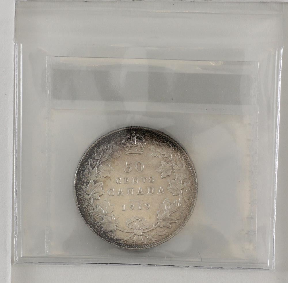 50-cent 1919 ICCS EF40. A lightly toned coin with underlying luster.