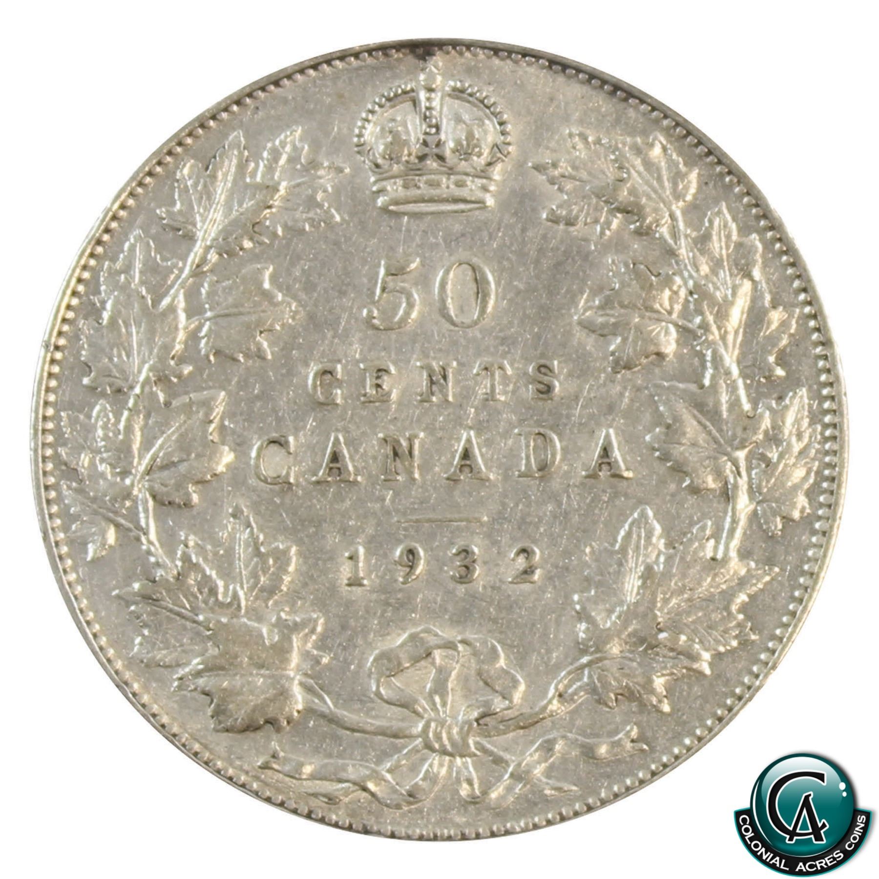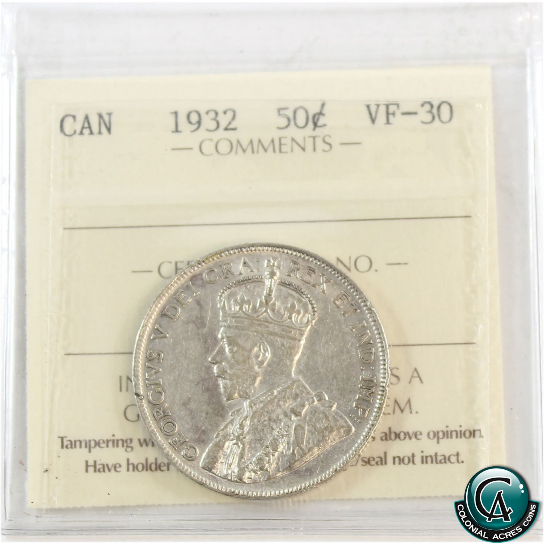 50-cent 1932 ICCS Certified VF-30. A nice mid-grade example of a Key Date coin.