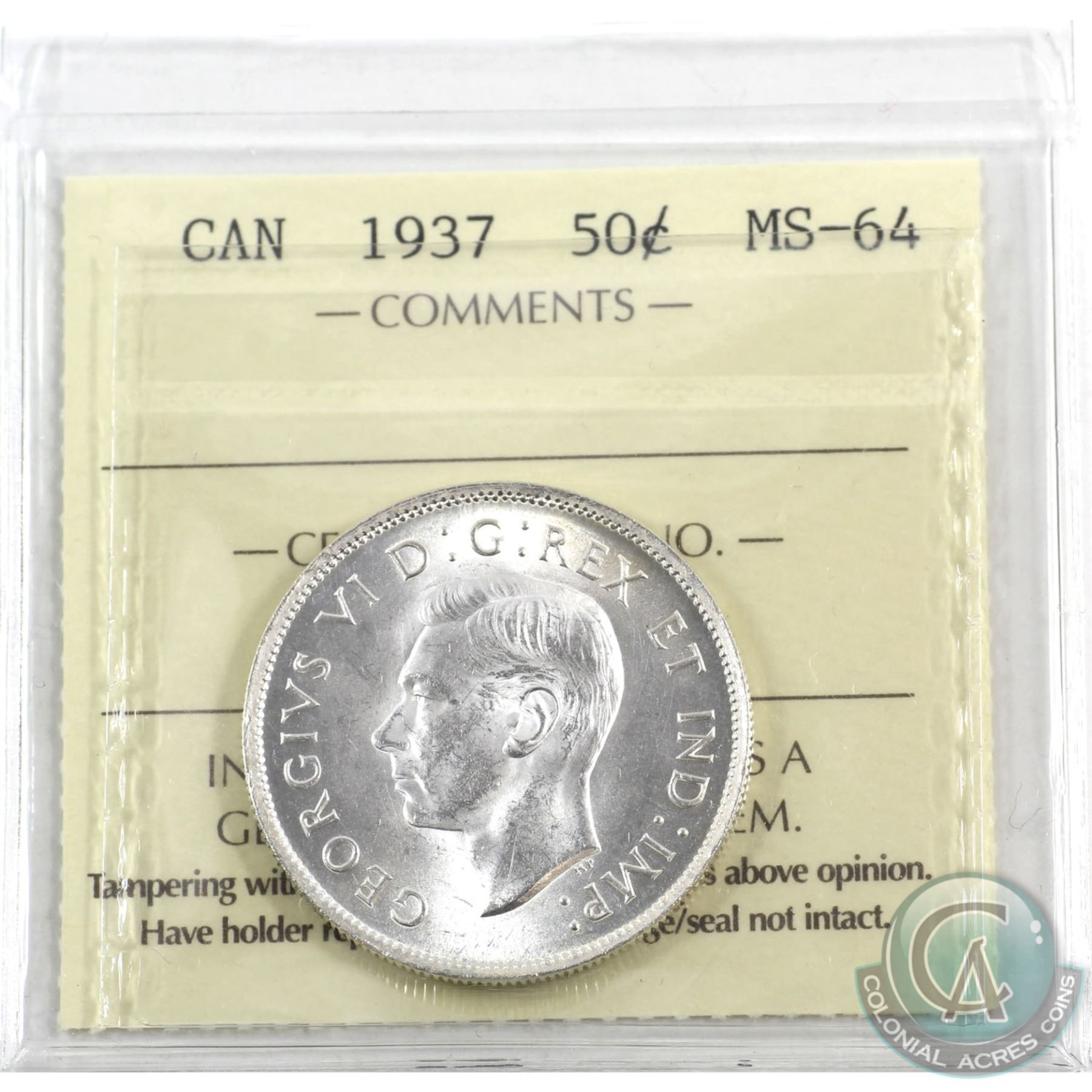 50-cent 1937 ICCS Certified MS-64. Frosted blast white!