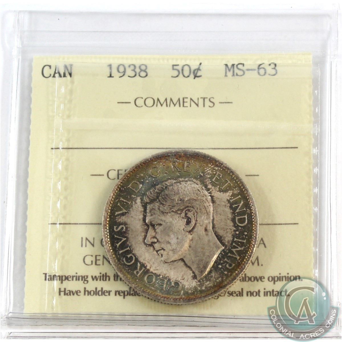 50-cent 1938 ICCS Certified MS-63