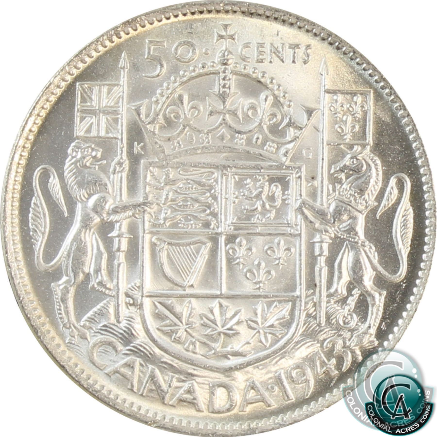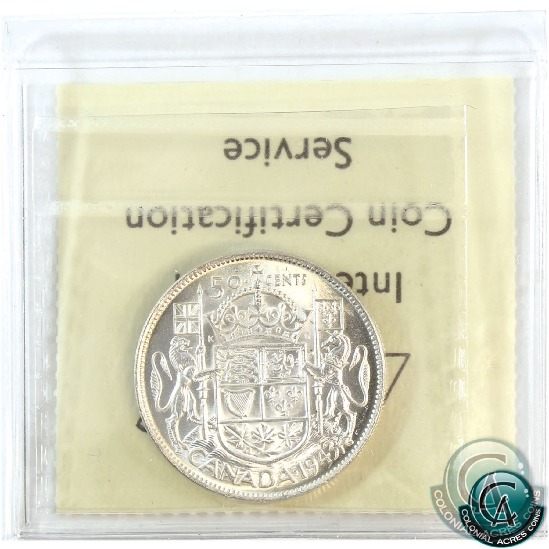 50-cent 1943 Double Die 3 ICCS Certified MS-64. A lustrous coin with subtle hints of golden toning.