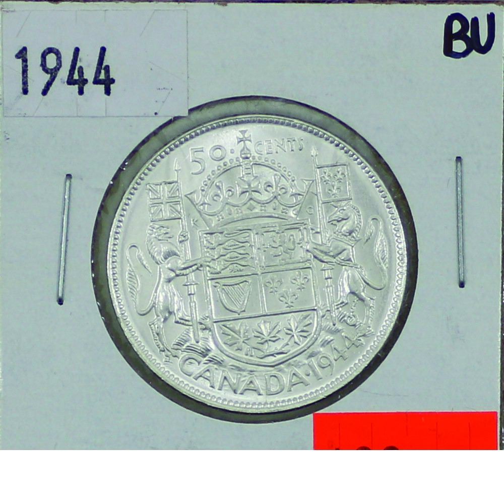 50-cent 1944 in Brilliant Uncirculated condition. An attractive white coin with satin fields.