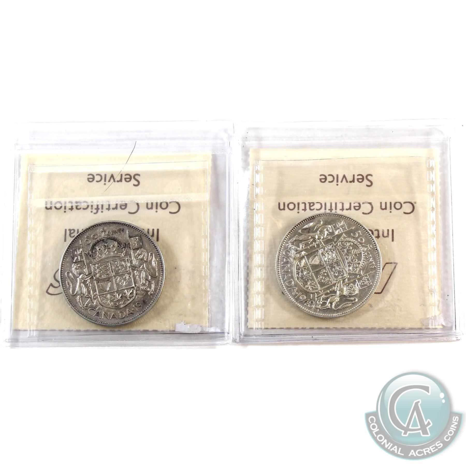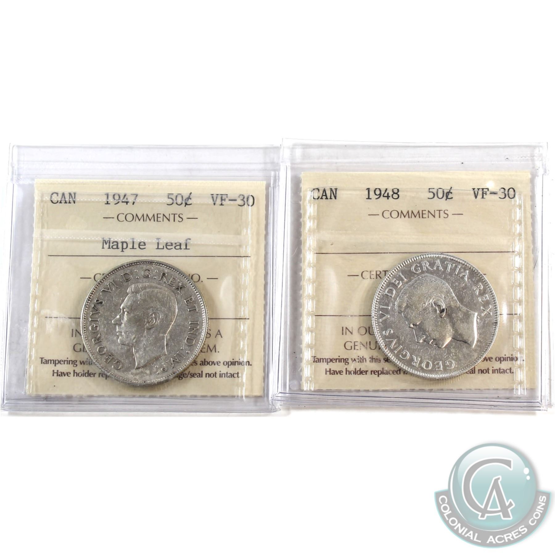 50-cent 1947 Maple Leaf & 1948 ICCS Certified VF-30. 2pcs