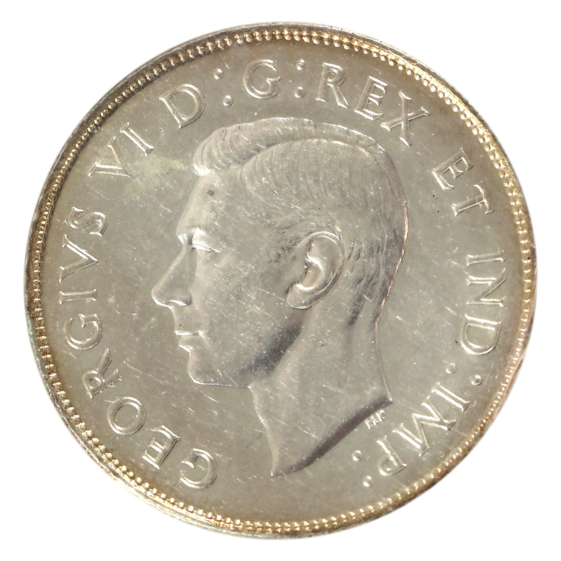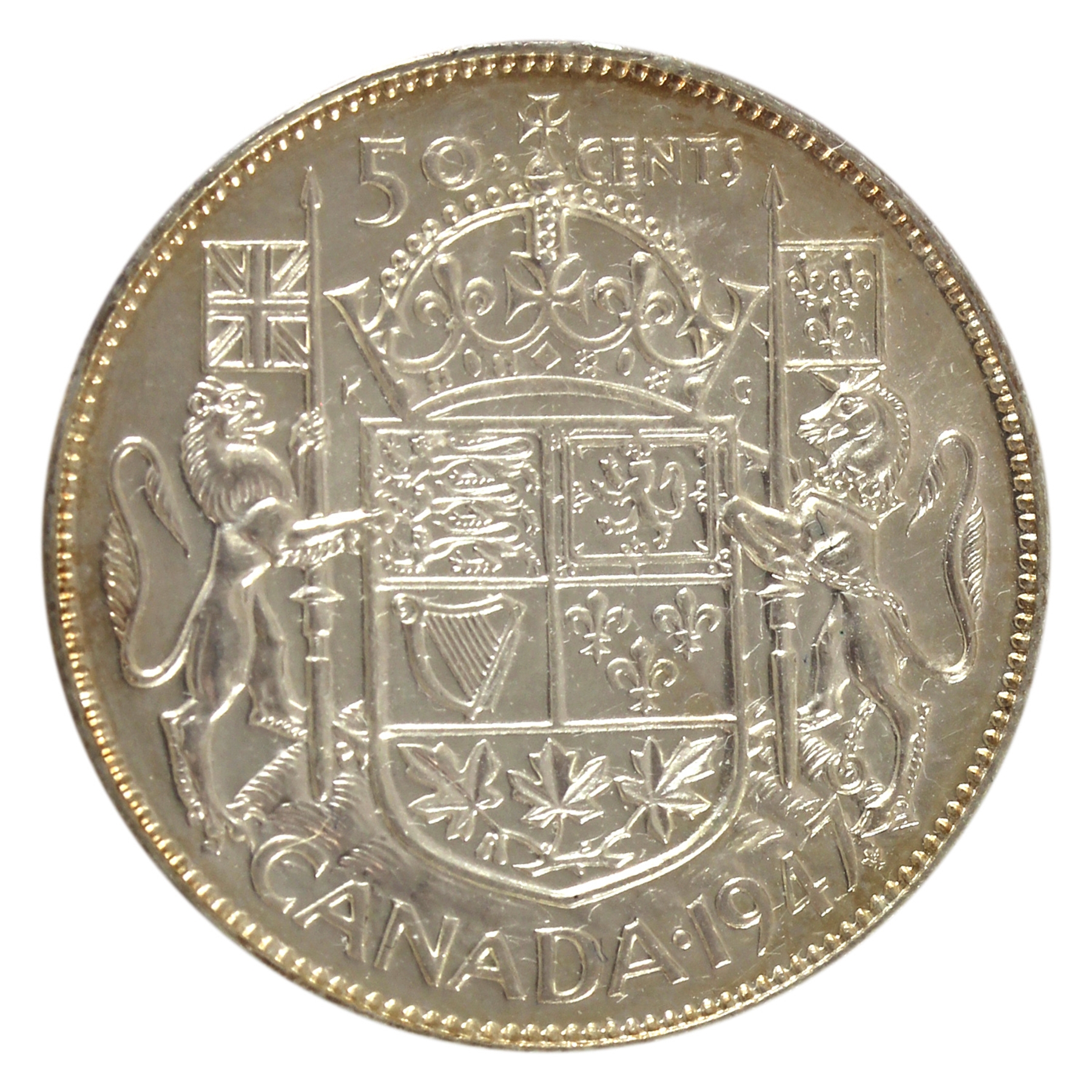 50-cent 1947 Maple Leaf; 7/7 ICCS AU55