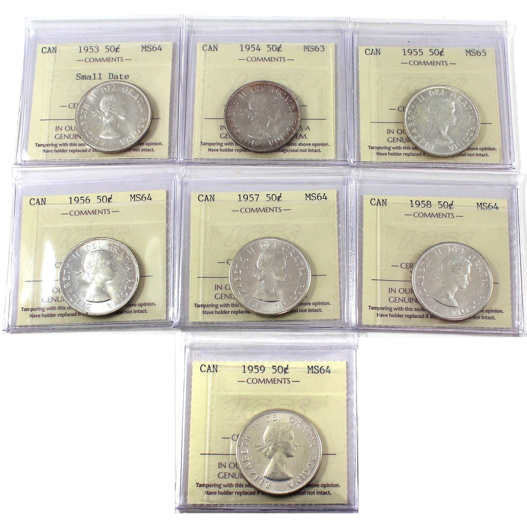 INCLUDES: 1953 Small Date MS64, 1954 MS63, 1955 MS65, 1956 MS64, 1957 MS64, 1958 MS64 & 1959 MS64. 7pcs