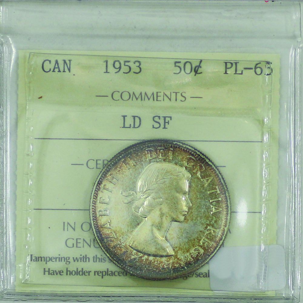 50-cent 1953 Large Date SF ICCS Certified PL-65.