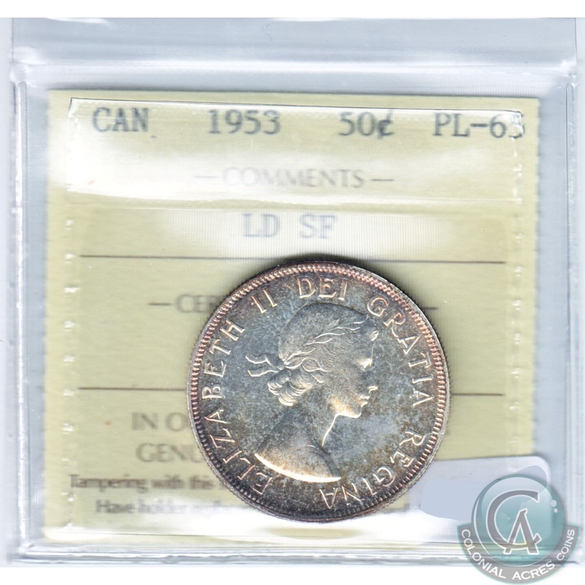 50-cent 1953 Large Date SF ICCS Certified PL-65