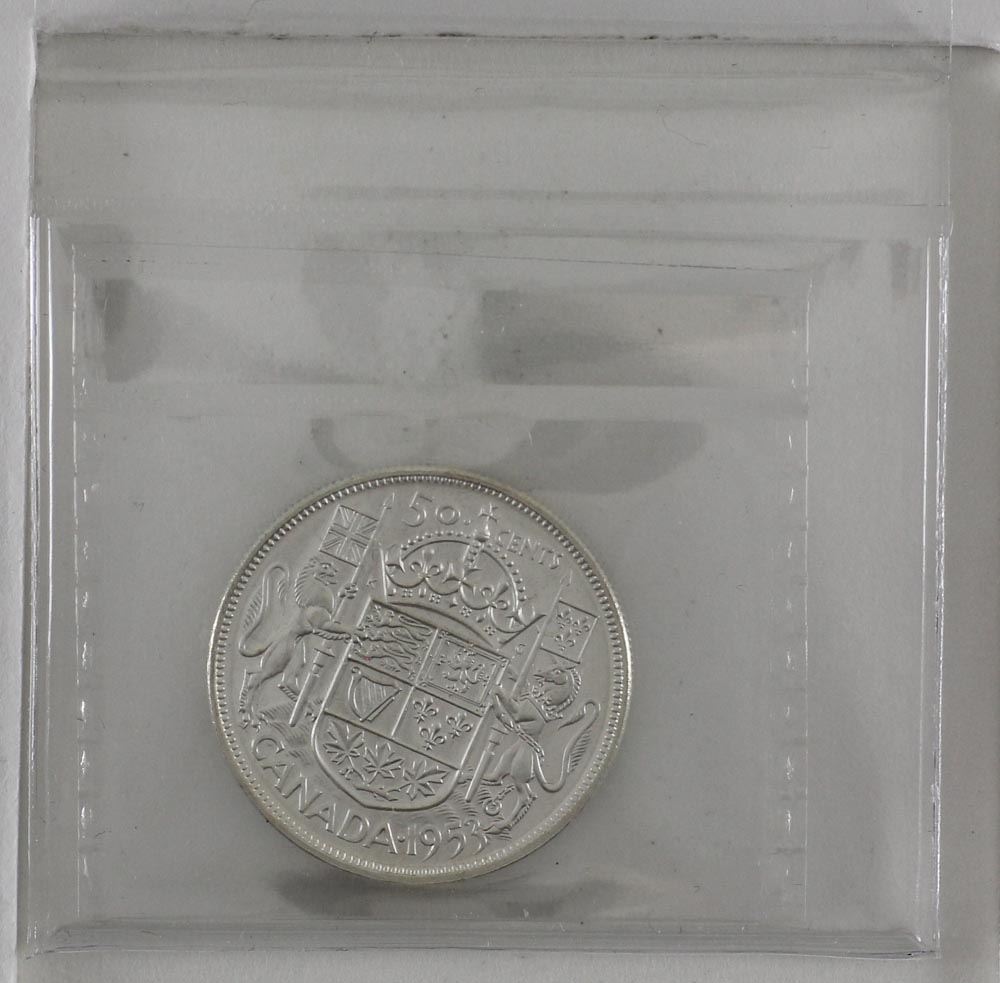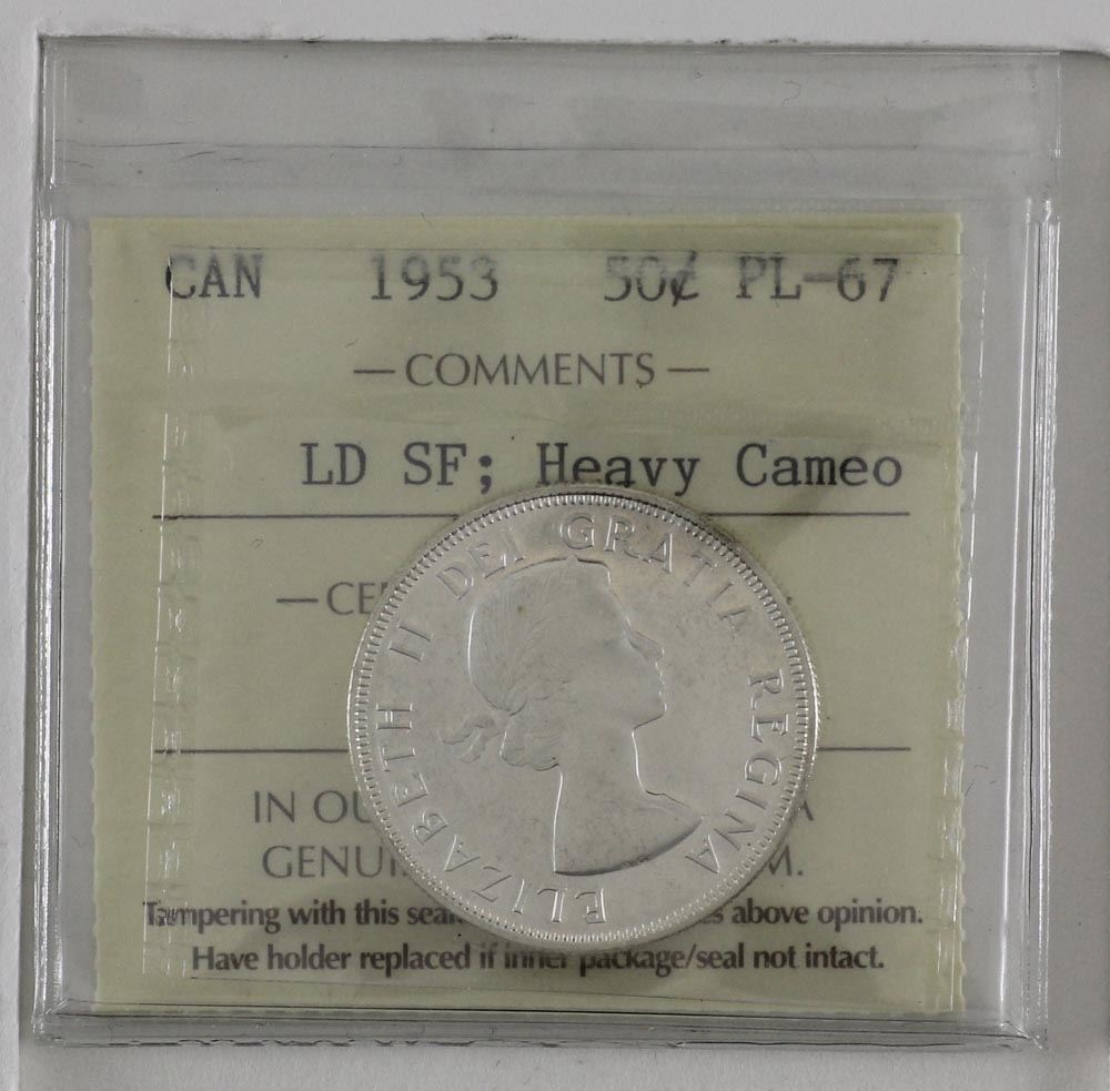 50-cent 1953 Large Date, SF ICCS PL67 Heavy Cameo. Tied for the highest technical grade
