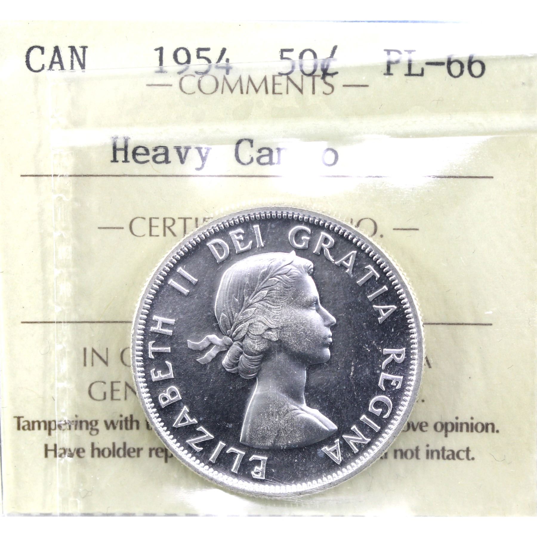 50-cent 1954 ICCS Certified PL-66 Heavy Cameo. A bright mirror finish coin!
