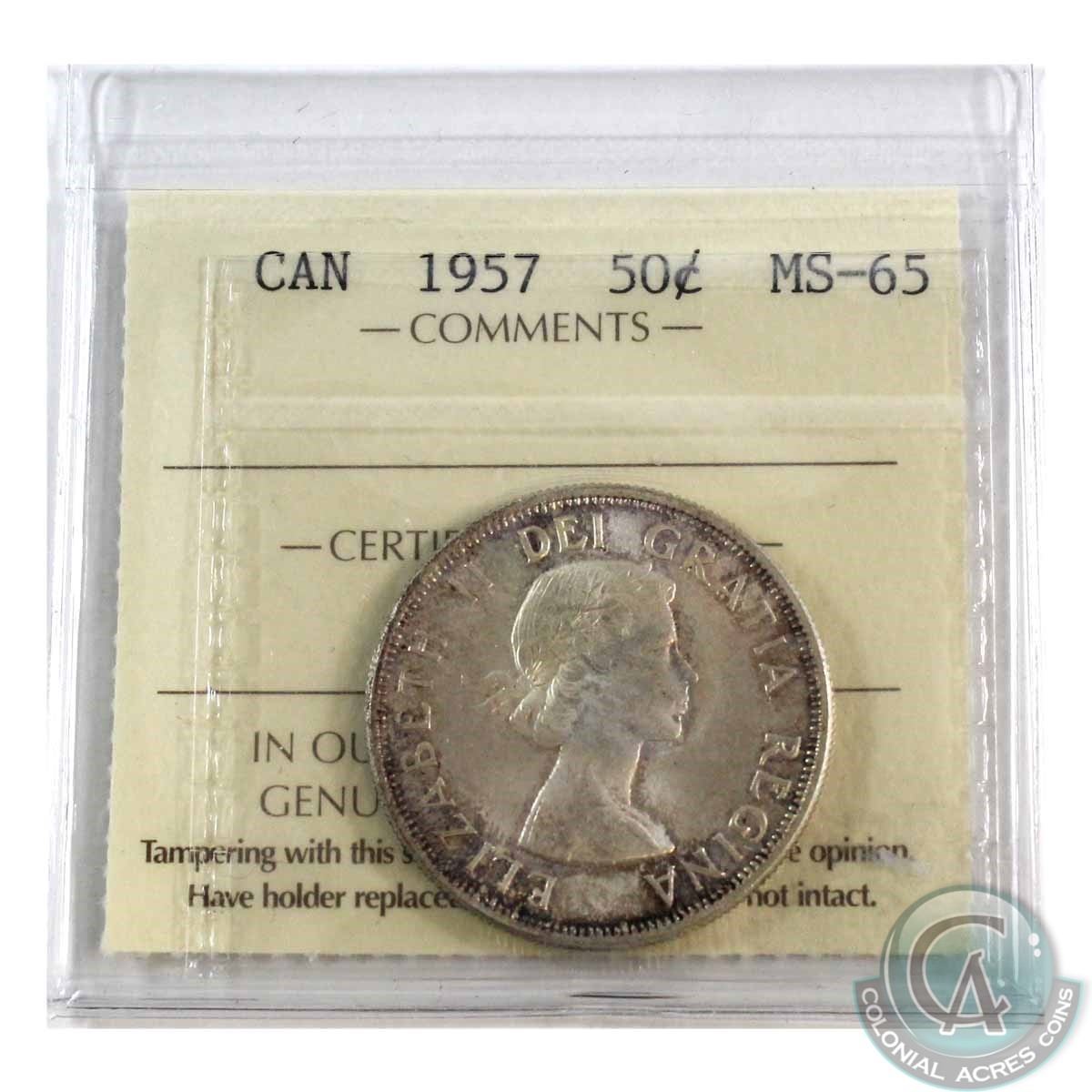 50-cent 1957 ICCS Certified MS-65! Tied for 2nd highest grade with only 1 graded higher!