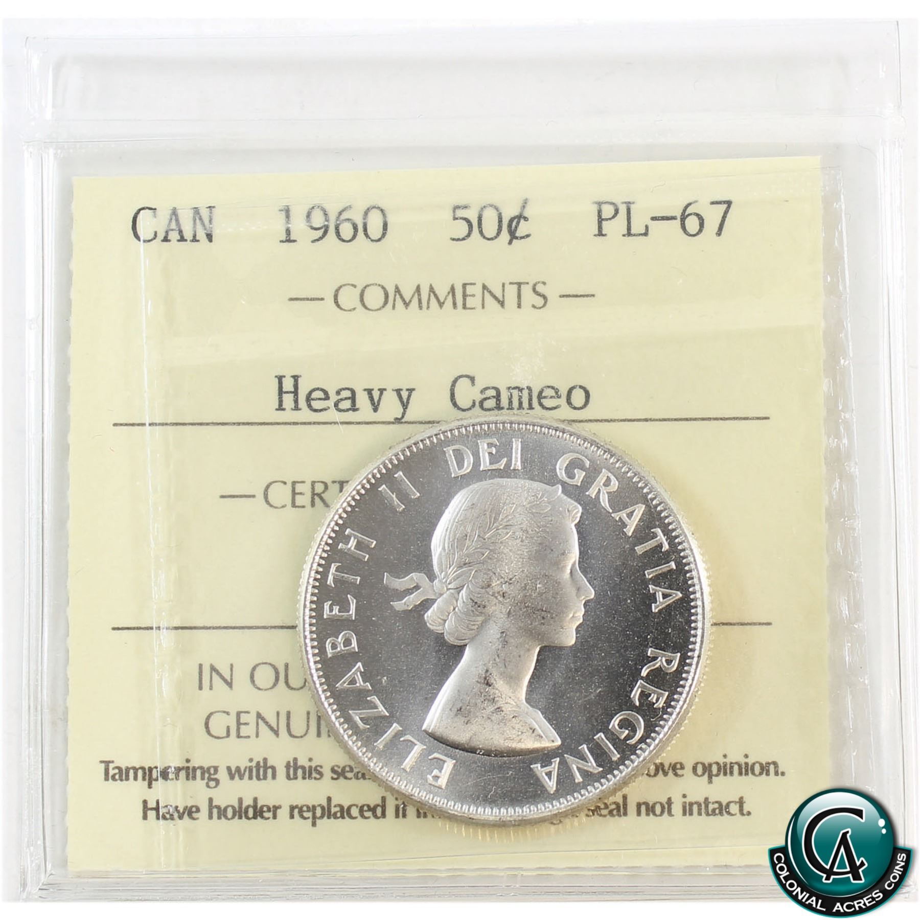 50-cent 1960 ICCS Certified PL-67 Heavy Cameo.