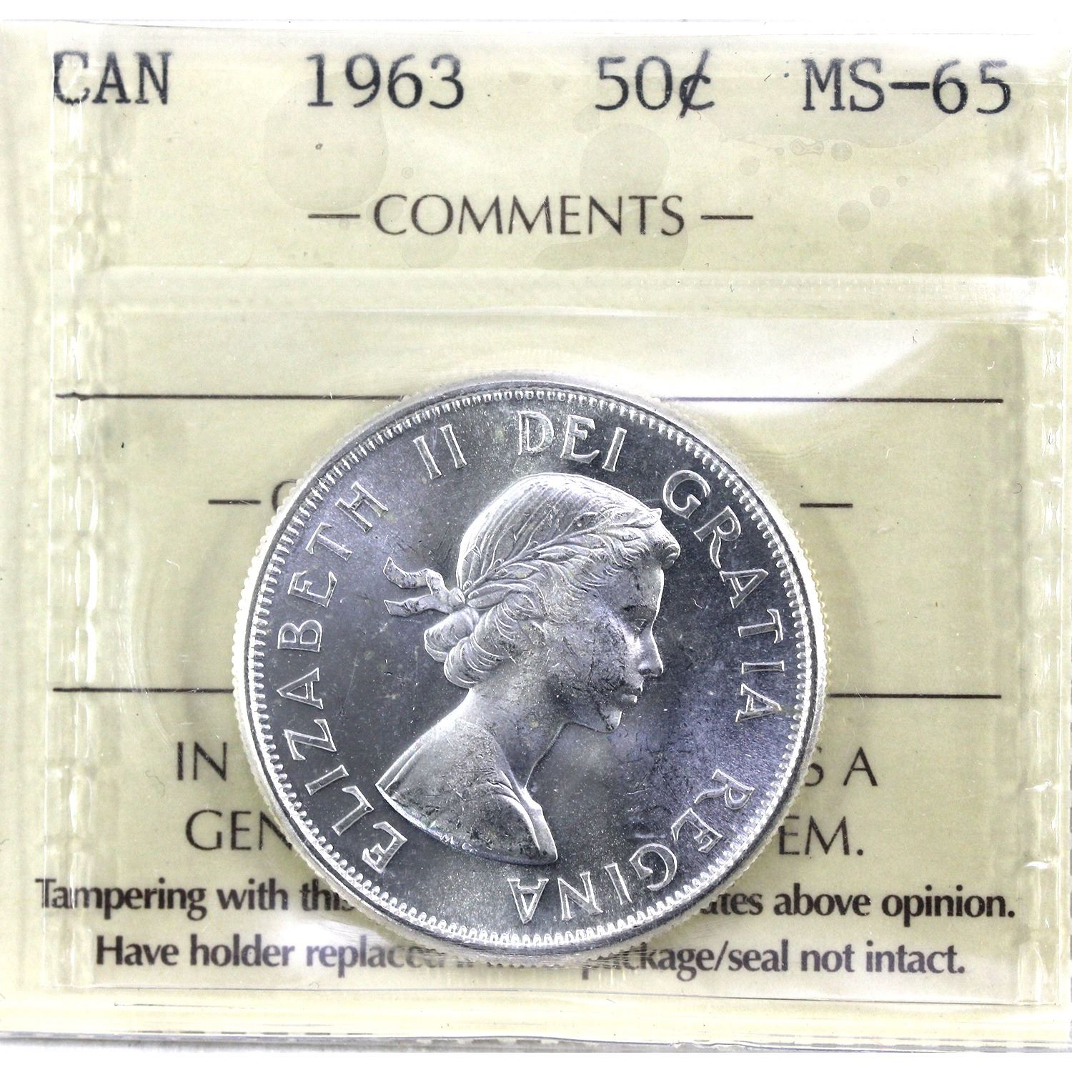 50-cent 1963 ICCS MS65. Flashy Blast-White Coin