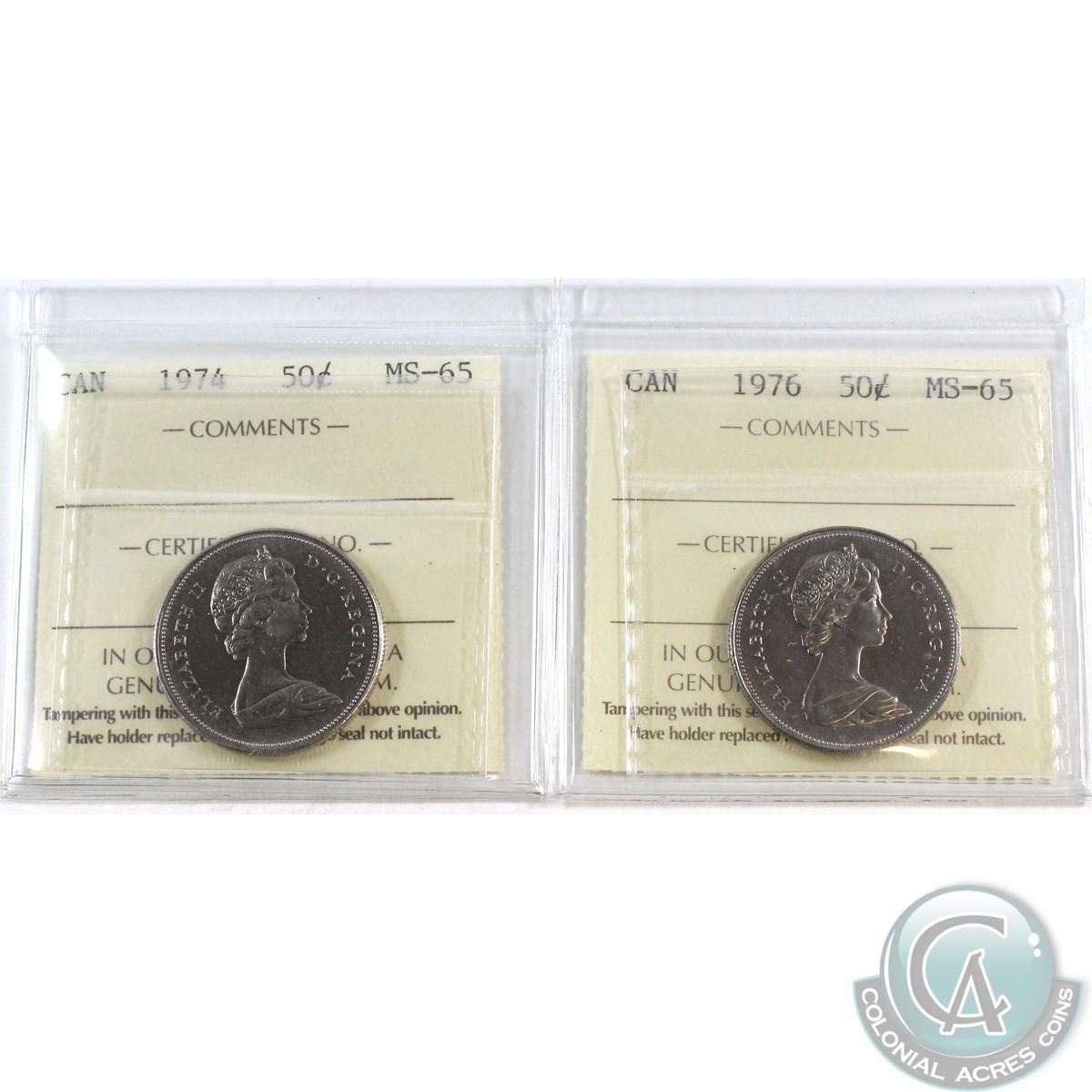 50-cent 1974 & 1976 ICCS Certified MS-65. 2pcs