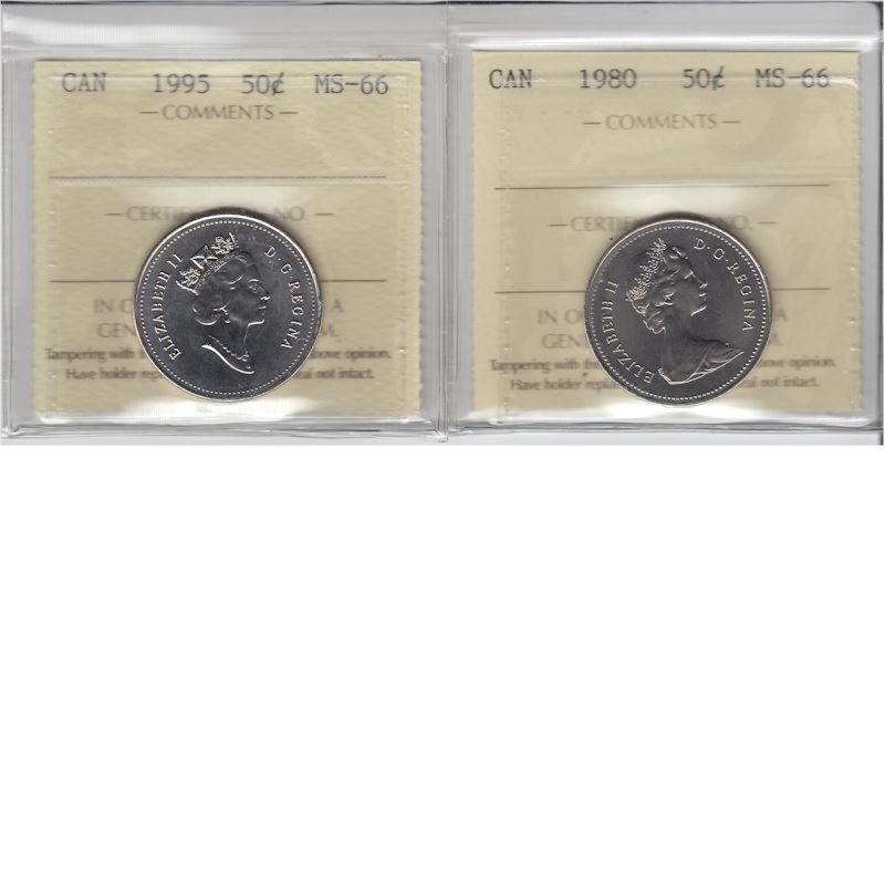 50-cent 1980 & 1995 ICCS MS66. 2pcs