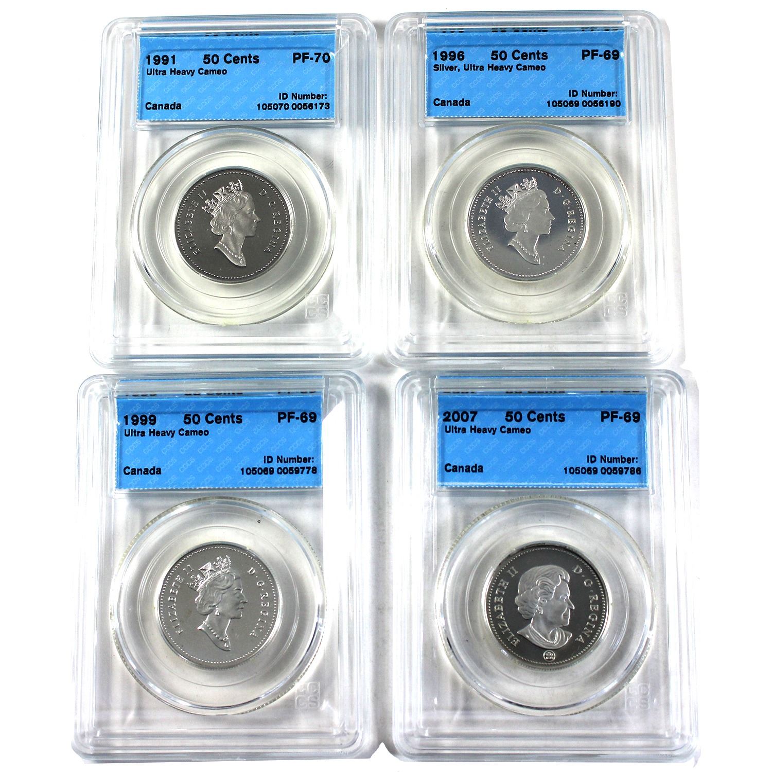 50-cent 1991 PF70, 1996 PF69, 1999 PF69, & 2007 PF69 CCCS UHC. 4pcs