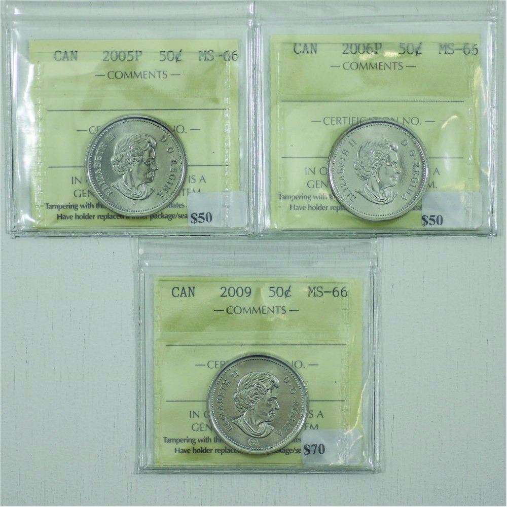 50-cent 2005P, 2006P & 2009 ICCS Certified MS-66. 3pcs