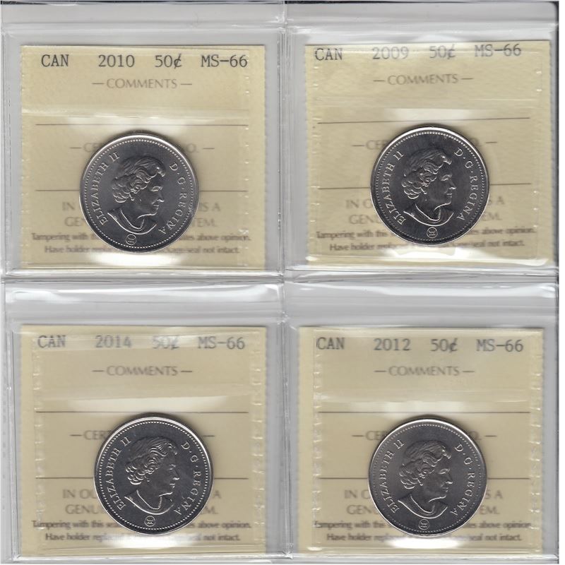 50-cent 2009, 2010, 2012 & 2014 ICCS MS66. 4pcs