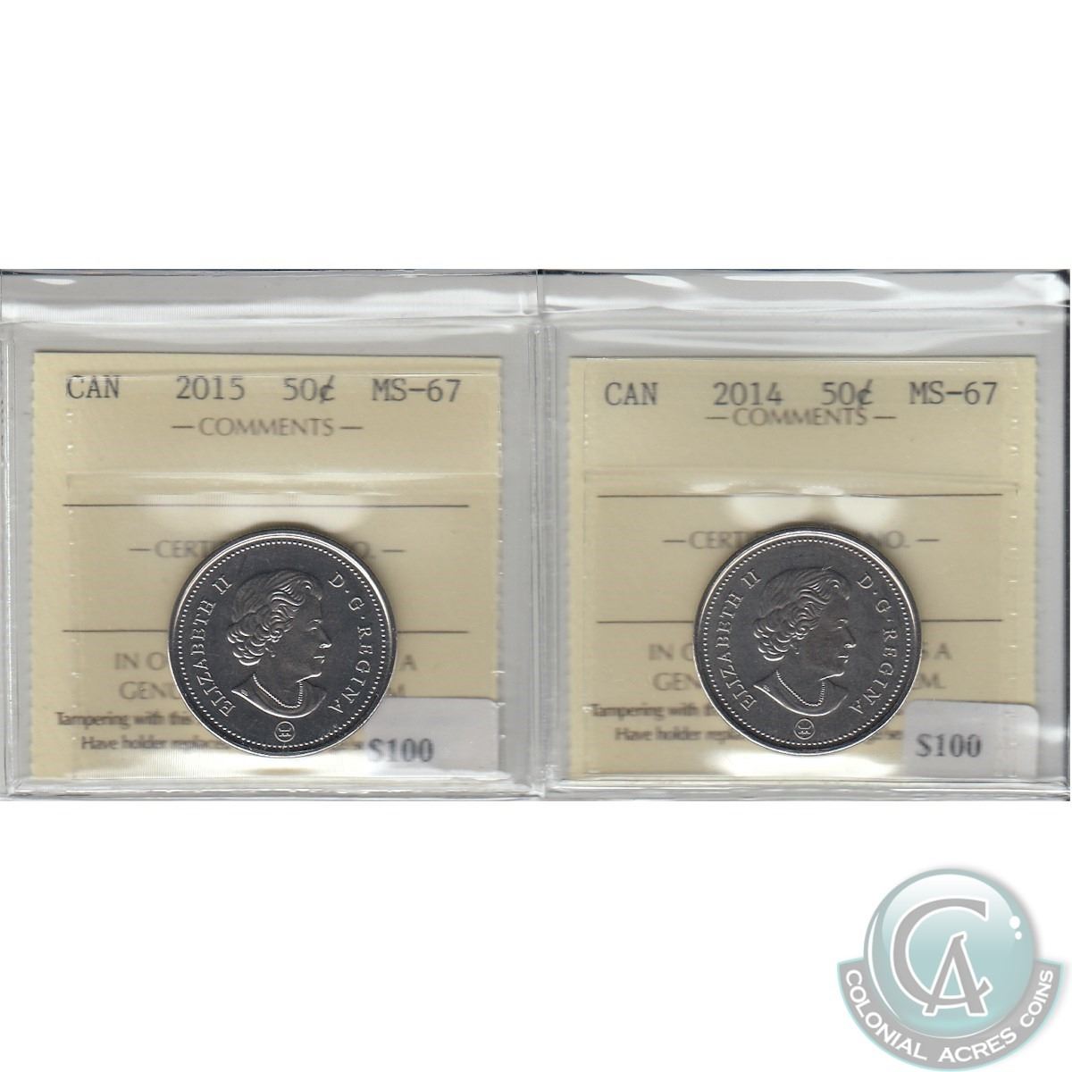 50-cent 2014 & 2015 ICCS Certified MS-67. Both Tied for Finest Known. (2pcs)