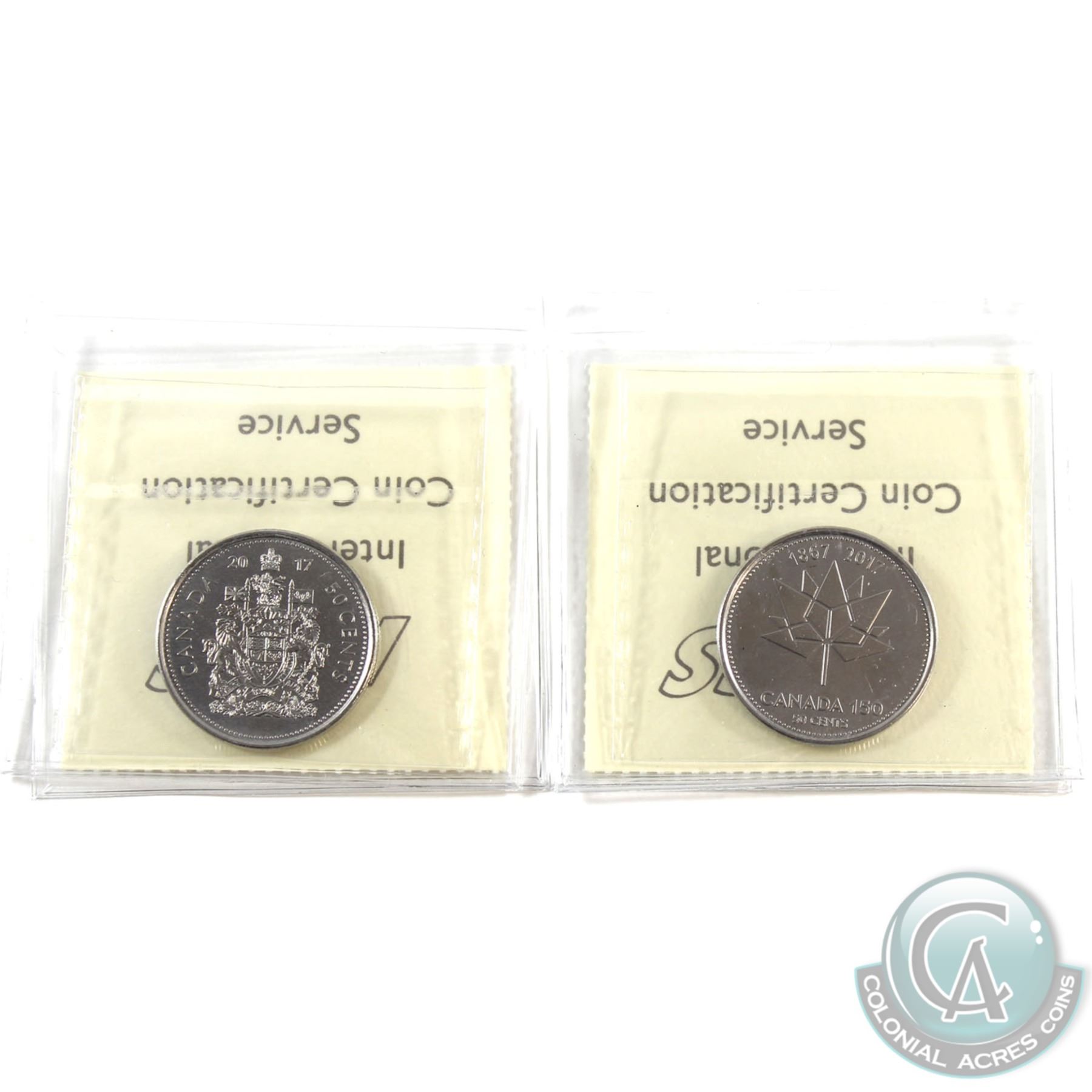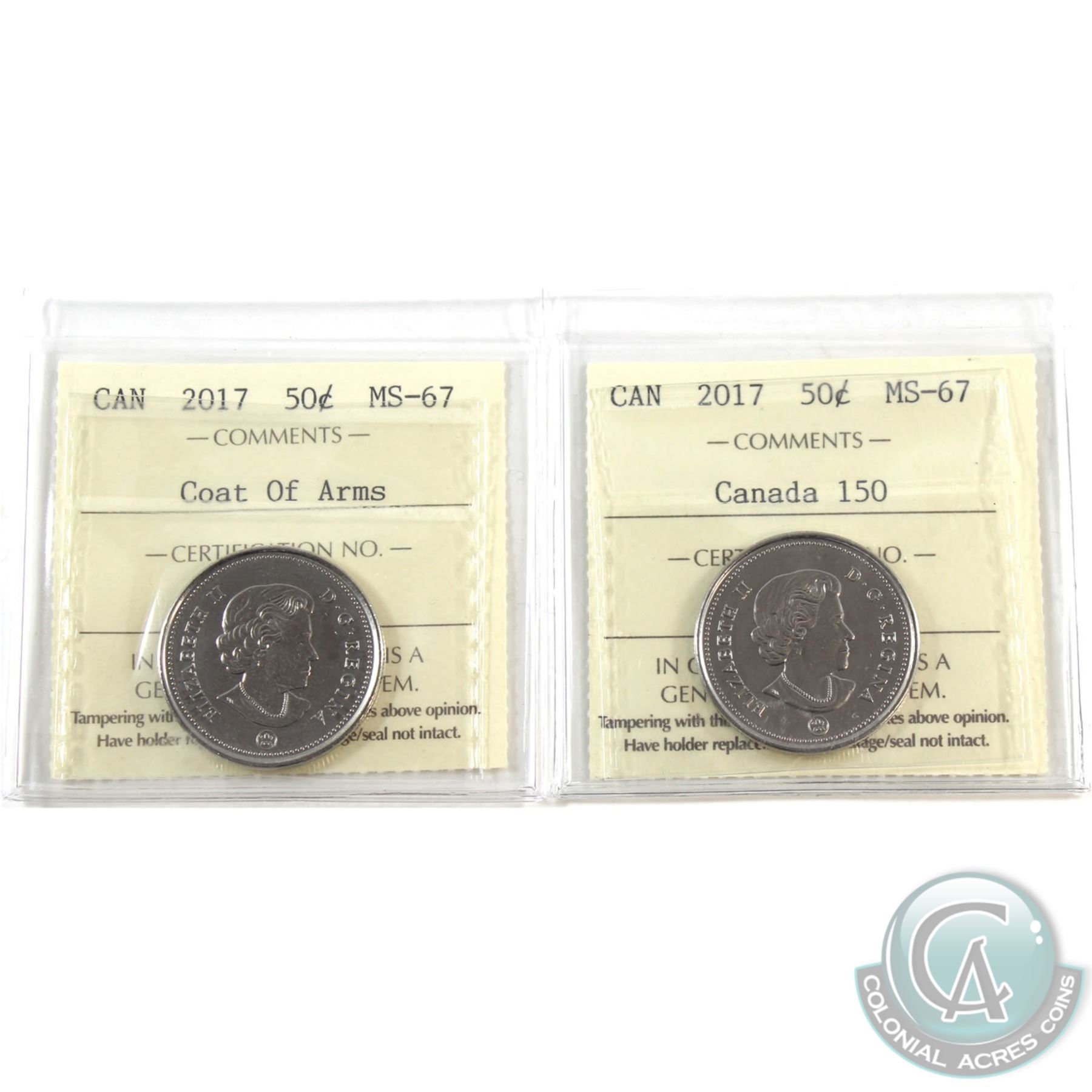 50-cent 2017 Canada 150 & 2017 Coat of Arms ICCS Certified MS-67. 2pcs