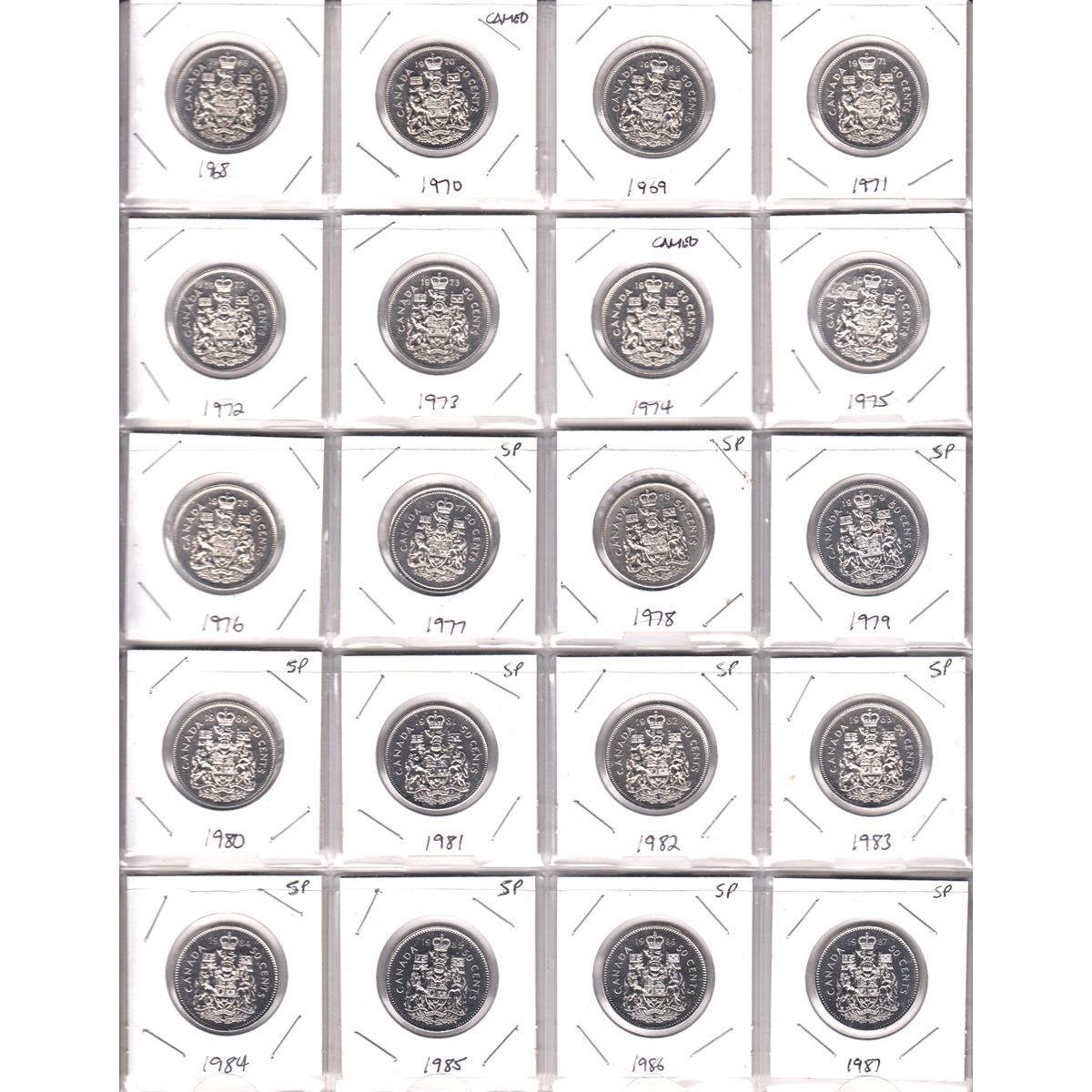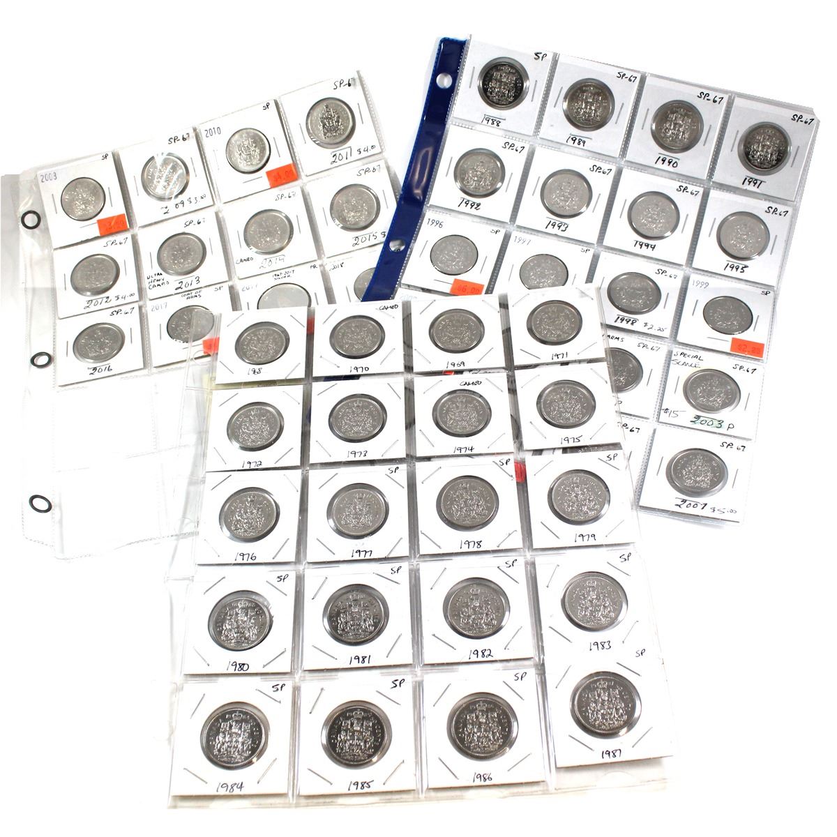 50-cent Collection 1967-2018. Coins are Specimen from 1977-2018, including 1967 ICCS SP-66 Heavy Cameo and 2017 150th Centennial Silver Proof housed in a 2x2 holder. 53pcs