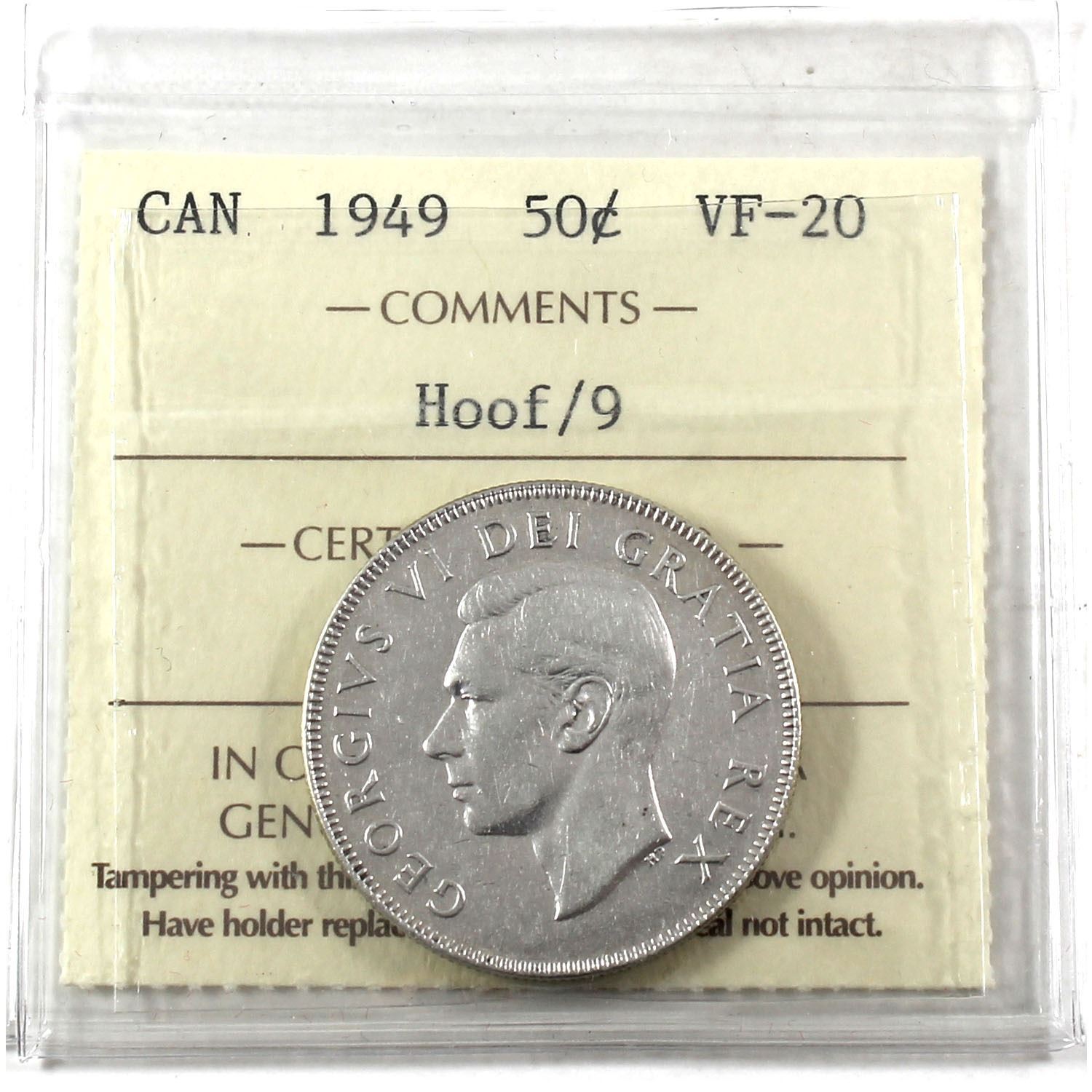 50-cents 1949 Hoof Over 9 Canada ICCS Certified VF-20.