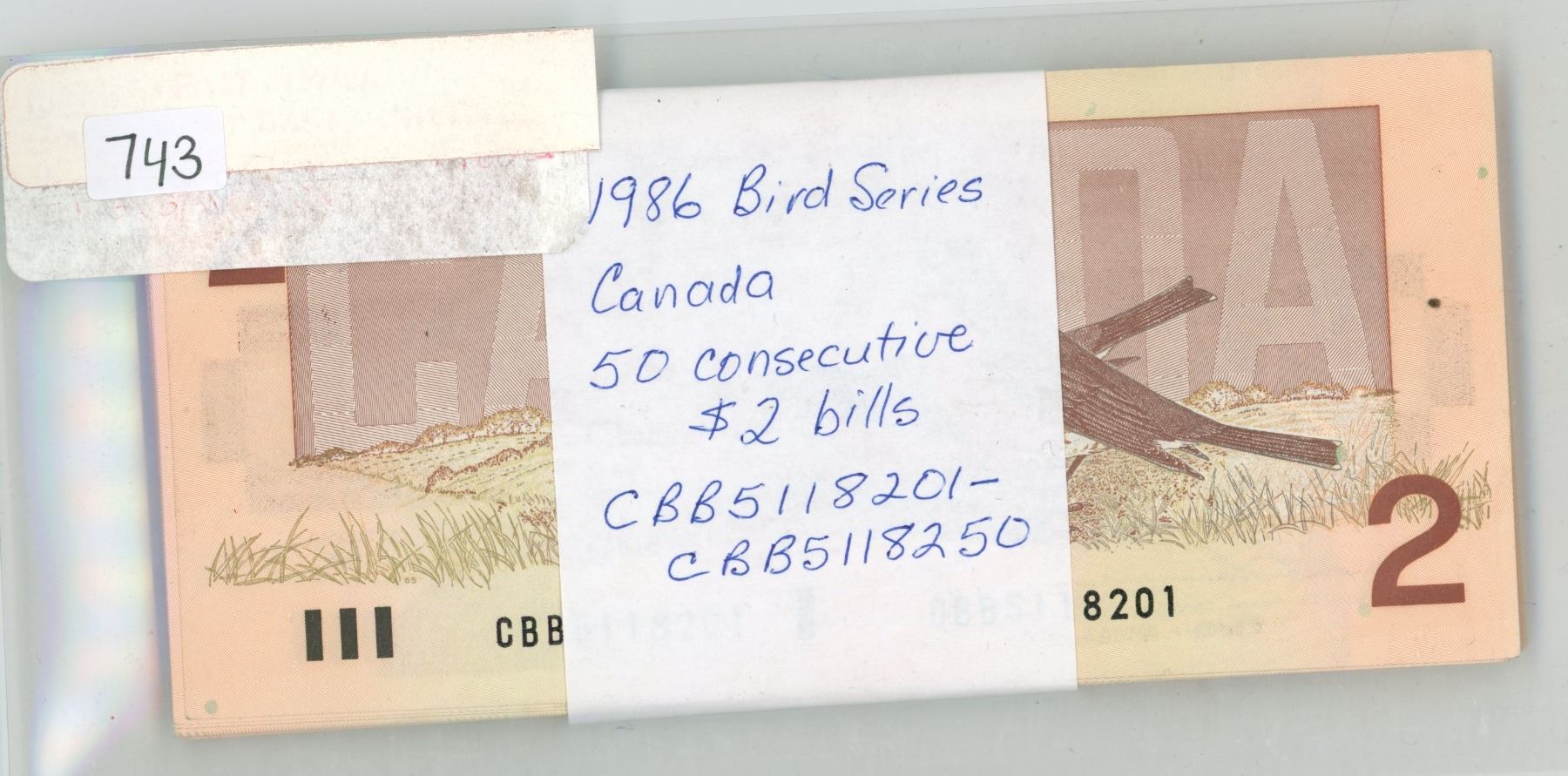 50 consecutive UNC canada 1986 $2 bills, Theissen/Crow (#CBB 5118202-250)
