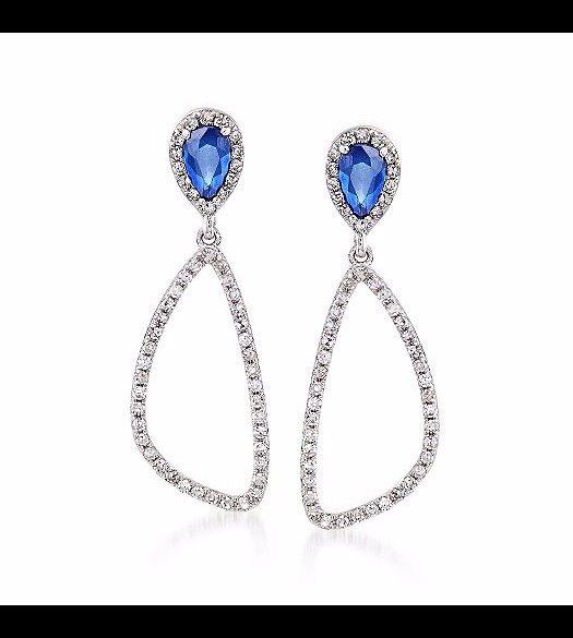 Lovely polished 14kt white gold open drops boast .50 ct. t.w. pear-shaped sapphires and are outlined in .30 ct. t.w. diamonds. Hanging length is 7/8". Post/clutch, diamond and sapphire open drop earrings.