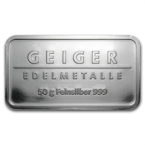 50 gram Geiger 'Security Line' Silver Bar .999 Fine **|**|** 50 gram Geiger 'Security Line' Silver Bar .999 Fine ; MSRP: $100