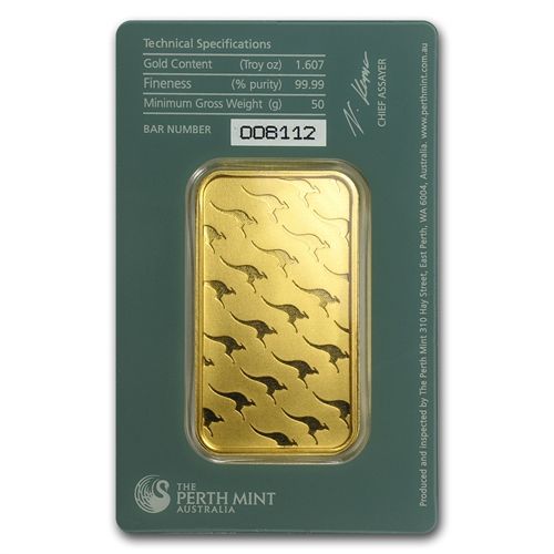 50 gram Perth Mint Gold Bar .9999 Fine (In Assay) **|**|** 50 gram Perth Mint Gold Bar .9999 Fine (In Assay) ; MSRP: $3800